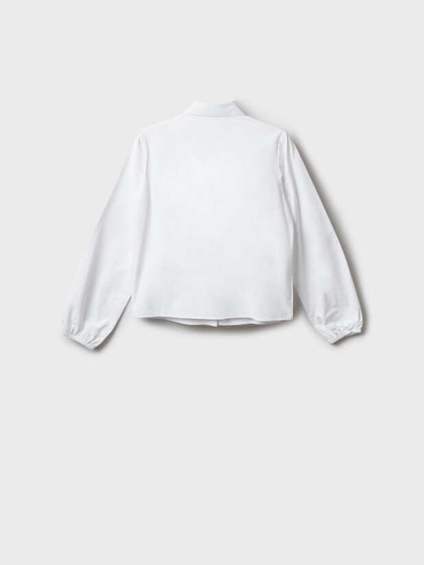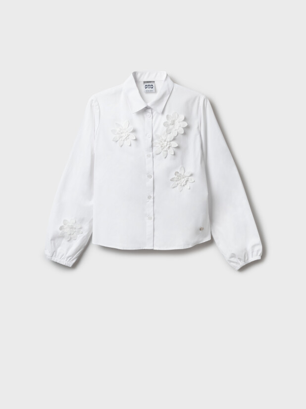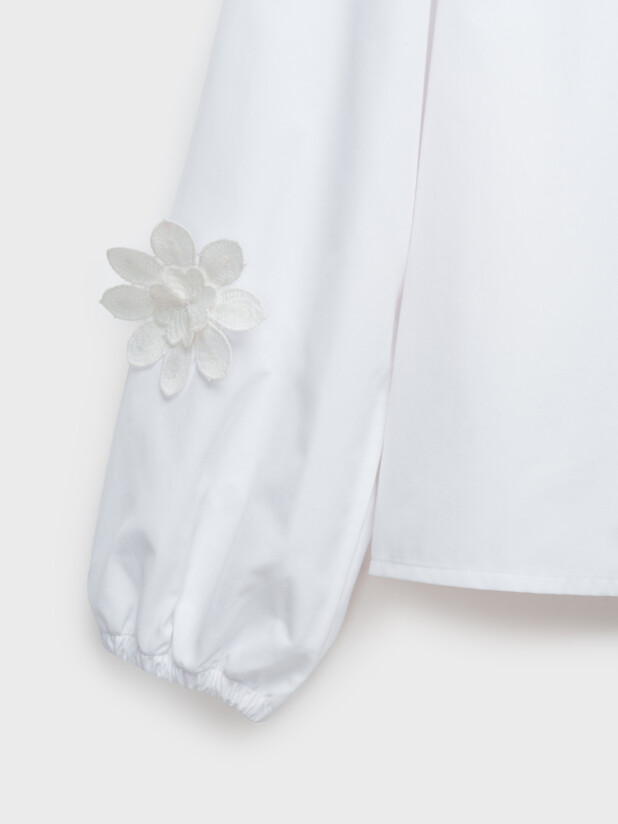 Нарядная белая блузка для девочки-подростка от бренда PlayToday из школьной коллекции — стильный и удобный выбор для школы и торжественных мероприятий.