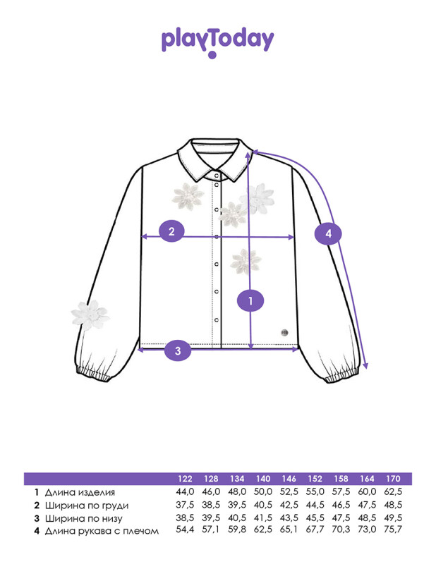 Совет по стилю: такая школьная блузка для девочки гармонично сочетается с любыми элементами школьной формы — классическими юбками, сарафанами или брюками из коллекции PlayToday. Для более нарядного образа добавьте белые банты, галстук или жакет.
