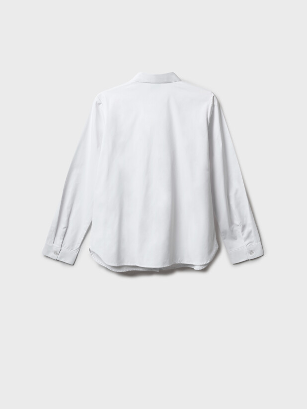 Эта белая блузка для школы проста в уходе — достаточно стирать при 30°C, она сохраняет форму.