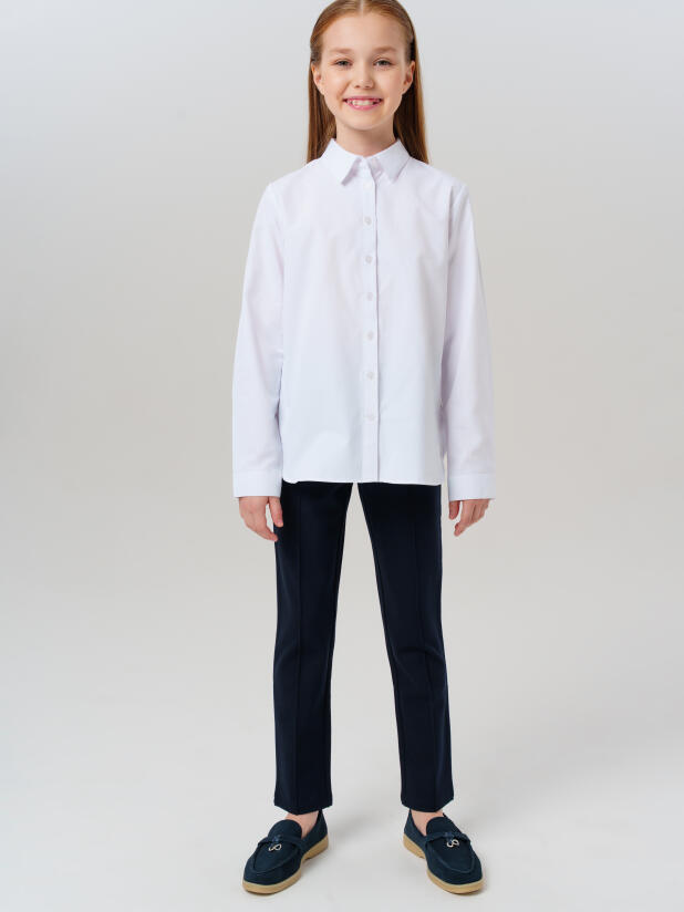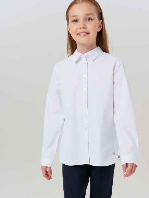 Белая блузка для девочки-подростка из школьной коллекции PlayToday — нарядный и универсальный выбор для школы, праздников и торжественных мероприятий.