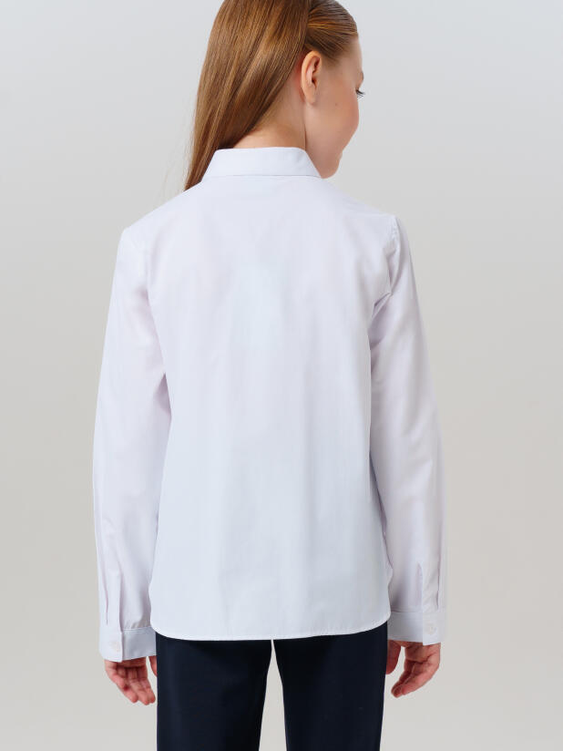 Модель выполнена из текстиля с высоким содержанием хлопка — ткань приятная к телу, хорошо дышит и держит форму даже после множества стирок. Прямой силуэт и комфортная посадка дарят свободу движений — ребёнку будет удобно как на уроках, так и на переменах. Застёжка на аккуратные пуговицы позволяет легко и быстро надевать блузку самостоятельно.