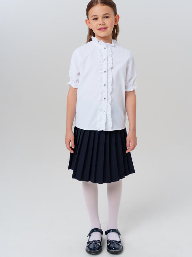 Совет по стилю: такая белая хлопковая блузка для девочки отлично сочетается с классическими школьными юбками, сарафанами или брюками из школьной коллекции PlayToday. Для торжественного образа добавьте банты или брошь, а для повседневного — лаконичный жилет или кардиган.