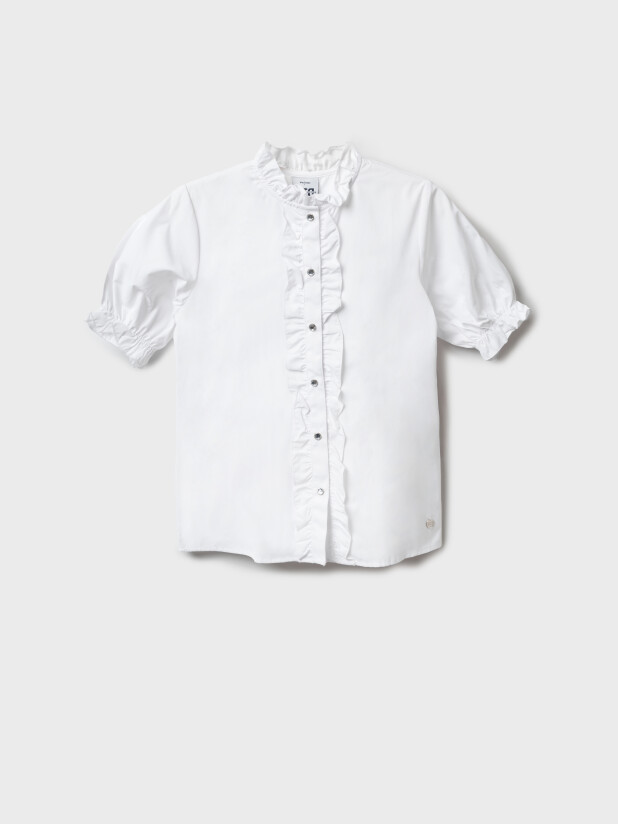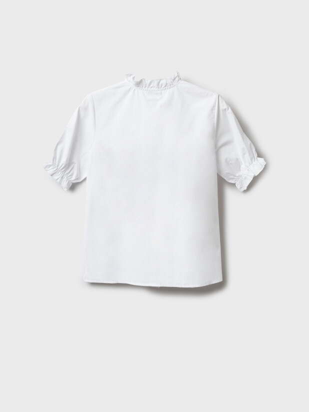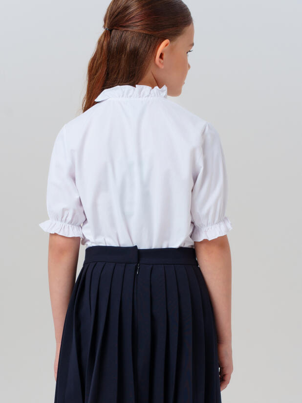 Белая нарядная блузка с коротким рукавом для девочки от PlayToday из школьной коллекции — идеальный выбор для 1 сентября, школьных праздников и повседневных учебных дней.