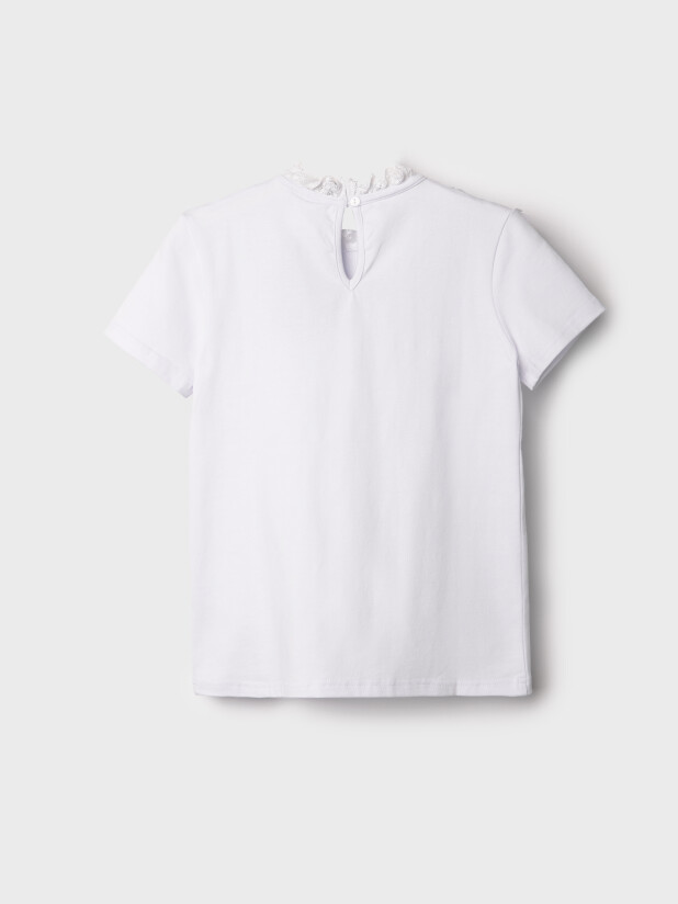 Белая школьная трикотажная блузка для девочки-подростка от PlayToday — стильная альтернатива текстильной рубашке, которая одинаково хорошо подойдёт и для школы, и для торжественных мероприятий.