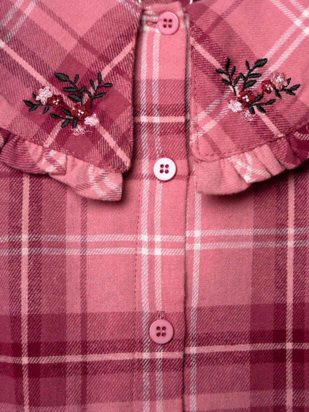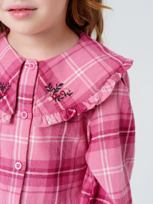 Текстильная блузка для девочки от PlayToday — уютная и стильная вещь для детского сада, праздников и повседневных прогулок. Модель выполнена из мягкой клетчатой фланели, которая дарит комфорт и тепло, а вышитый воротничок добавляет наряду изысканный и аккуратный акцент.