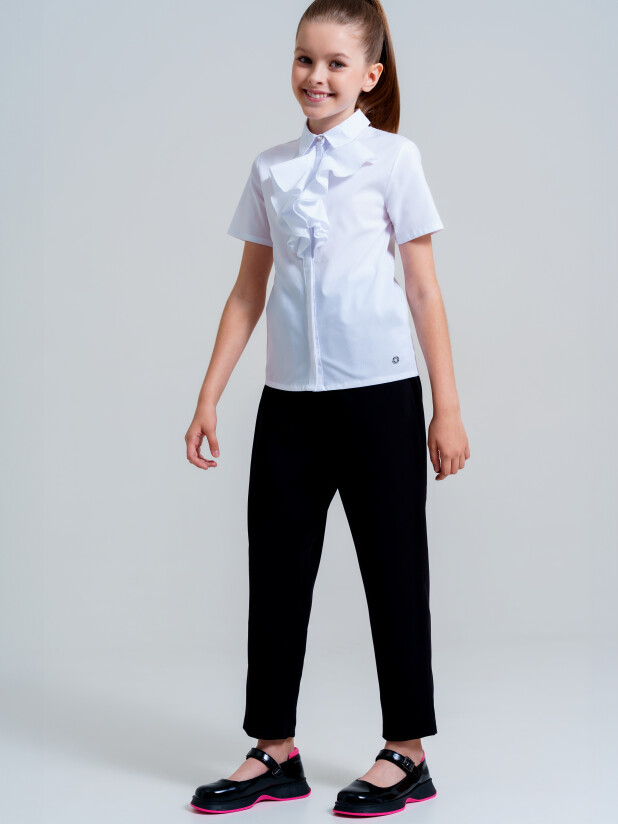 Белая нарядная блузка для девочки-подростка от бренда PlayToday из школьной коллекции — стильный и универсальный элемент гардероба для школы, праздников и торжественных мероприятий.