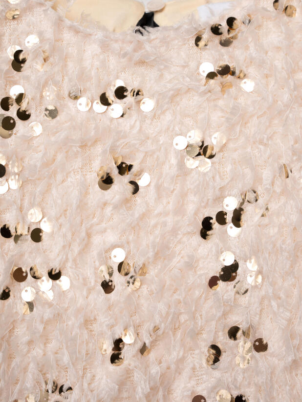 Уникальное сочетание ткани делает блузку ярким акцентом гардероба. Свободный крой обеспечивает комфорт и свободу движений.