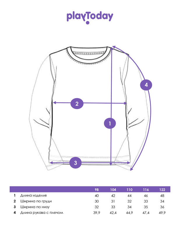 О товаре Нарядная трикотажная детская блузка для девочки от PlayToday — лёгкий и воздушный вариант для праздников, детского сада и прогулок. Модель выполнена из мягкой принтованной сетки, которая красиво драпируется и не сковывает движений. Преимущества модели: + мягкая сетчатая ткань — приятная к телу, с лёгким эффектом воздушности + современный яркий принт — добавляет игривости и стиля + свободный крой — удобно для активных игр и занятий + универсальный фасон — легко сочетается с юбками, брюками и сарафанами + дышащая ткань — комфорт в течение всего дня Когда и как носить: Блузка идеально подойдёт как для повседневных прогулок и занятий в школе, так и для праздничных мероприятий. Её можно надеть с классической юбкой и туфельками для нарядного образа или с джинсами и кроссовками для повседневного стиля. Совет по стилю: Сочетайте блузку с лёгкой юбкой-солнце или сарафаном из коллекции PlayToday, чтобы создать нежный праздничный комплект. Размеры: 98, 104, 110, 116, 122 см — для девочек от 3 до 7 лет. Нарядная трикотажная блузка из сетки для девочек от PlayToday — стильный акцент в детском гардеробе. СОСТАВ 100% полиэстер Уход Максимальная температура стирки 30°С; мягкий режим., Не отбеливать., Утюжить при температуре не более 110°С., Чистка запрещена., Горизонтальная сушка на плоскости в расправленном состоянии., Стирать вывернутым наизнанку., Не утюжить отделку., Предварительная стирка обязательна., Утюжить с изнаночной стороны. Бренд PlayToday АРТИКУЛ 32522264 Цвет Фиолетовый Возрастная категория Дошкольники Пол Женский Сезон Осень, Зима Год коллекции 2025 Страна бренда Германия Страна производства Китай Возраст 3 года, 4 года, 5 лет, 6 лет, 7 лет Маркировка Товары легкой промышленности и одежда Миниколлекция PUZZLE