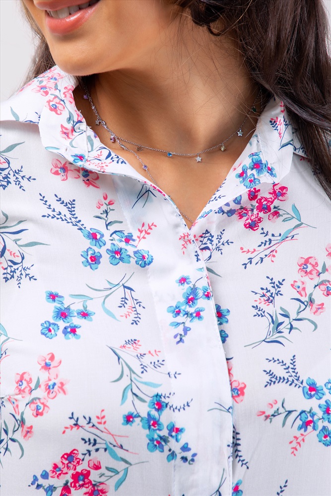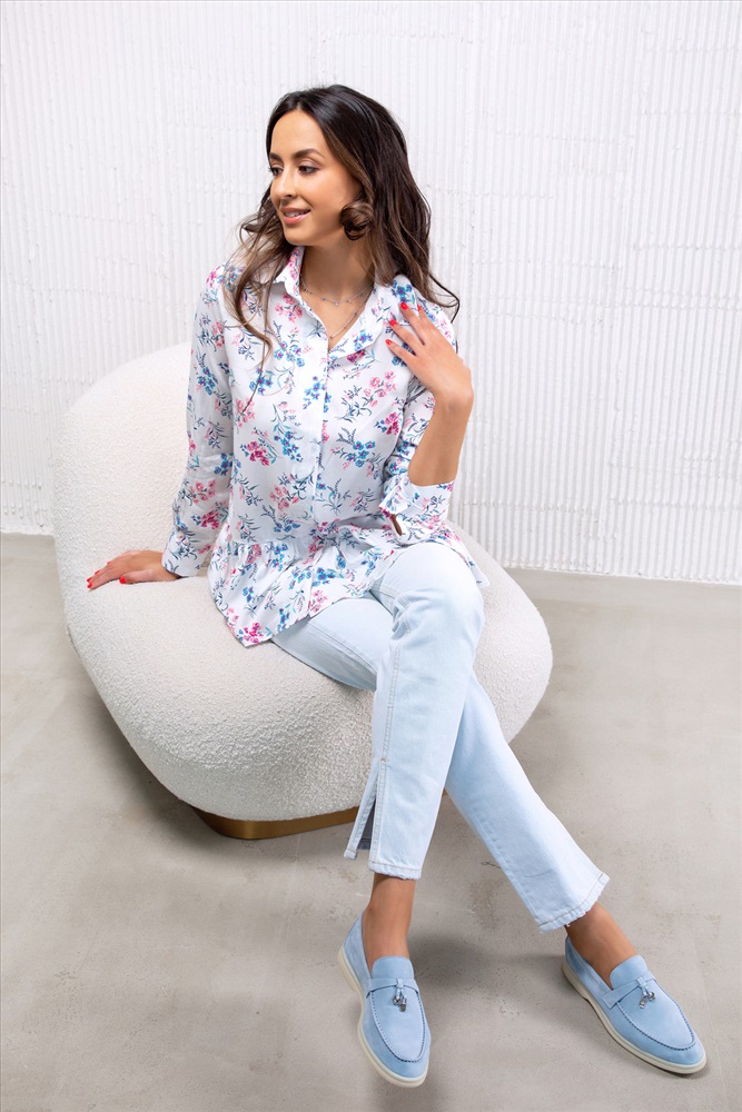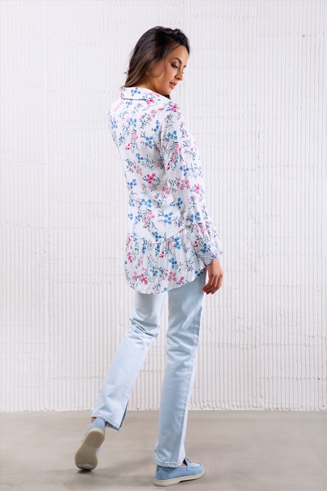 Блузка женская нарядная от бренда Raposa - незаменимый базовый предмет Вашего летнего гардероба! Нежнейший цветочный принт, струящаяся ткань, свобода в каждом движении - это все, что нужно жарким летом. Модель блузки с баской, с длинным рукавом придаст женственность вашему летнему наряду. Изысканная штапельная блузка в романтическом стиле легко сочетается с прямой юбкой или брюками. Представлена небольшими размерами с 40 до 48 и прекрасно подойдёт стройным девушкам и девочкам подросткам, для школы, на 1 сентября.