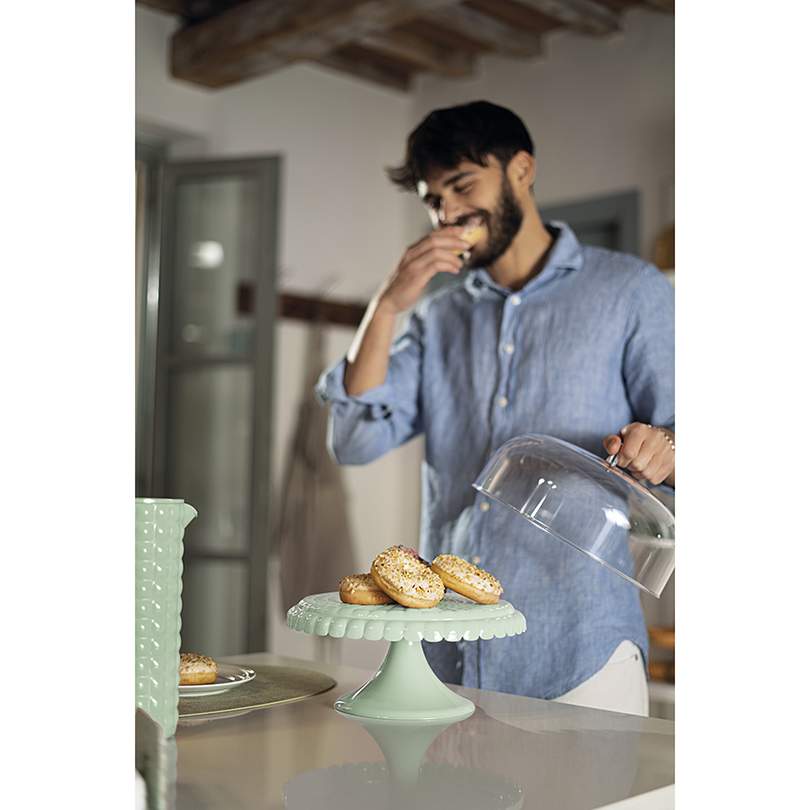 Блюдо Tiffany станет украшением праздничного стола или уютного чаепития на свежем воздухе. Оно идеально подойдет для подачи тортов, а также выпечки и всевозможных сладостей. Крышка в форме купола защитит продукты от заветривания, пыли и насекомых, что особенно важно во время трапез в саду или на открытой веранде. Рельефная форма в сочетании с прозрачным материалом заставляют поверхность посуды сверкать и переливаться на свету, делая ее центром притяжения взглядов.