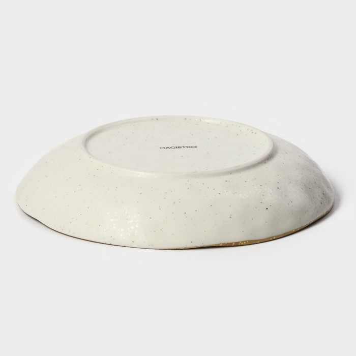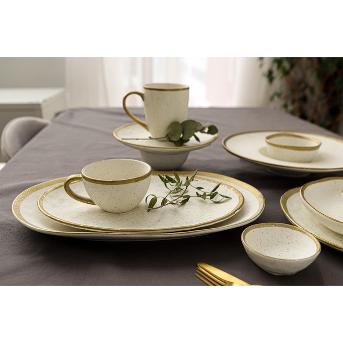 Габариты: 21 x 21 x 3,5 Страна: Китай В боксе: 24 шт Состав: Фарфор Материалы: фарфор Фасовка: по 1 шт Индивидуальная упаковка: Без упаковки Габариты товара: 21 см × 21 см × 3,5 см Сертификат: СТР Набор: Нет Цвет: Бежевый Диаметр, см: 21 В наборе, шт.: 1 Тематика: В крапинку, Полоски, полоса Рисунок: Да Материал: Фарфор Вид тарелки: Плоская Можно мыть в посудомоечной машине: Нет Можно использовать в СВЧ-печи: Нет Текстура: Гладкая Особенности: С золотой отводкой Матовая поверхность: Да Для горячего: Да Посуда серии Magistro Poursephona — это современная фарфоровая посуда. В оформлении серии превалируют два цвета – бежевый оттенок фарфора и роскошное золото в виде широкой окантовки предметов. Идеально подходит как для формального обеда, так и для торжеств по особым случаям. Лаконичные формы, золотая окантовка, разноцветные вкрапления придают изделиям из фарфора одновременно необычный и современный вид. Уход: Нельзя использовать в микроволновой печи. Не рекомендуется мыть в посудомоечной машине. ДополнительноМатовая поверхность посуды с золотой отводкой требует деликатного обращения. Нельзя использовать агрессивные чистящие средства и абразивные губки, а также скоблить металлическими приборами по изделию во избежание порчи покрытия. Комментарии к товару