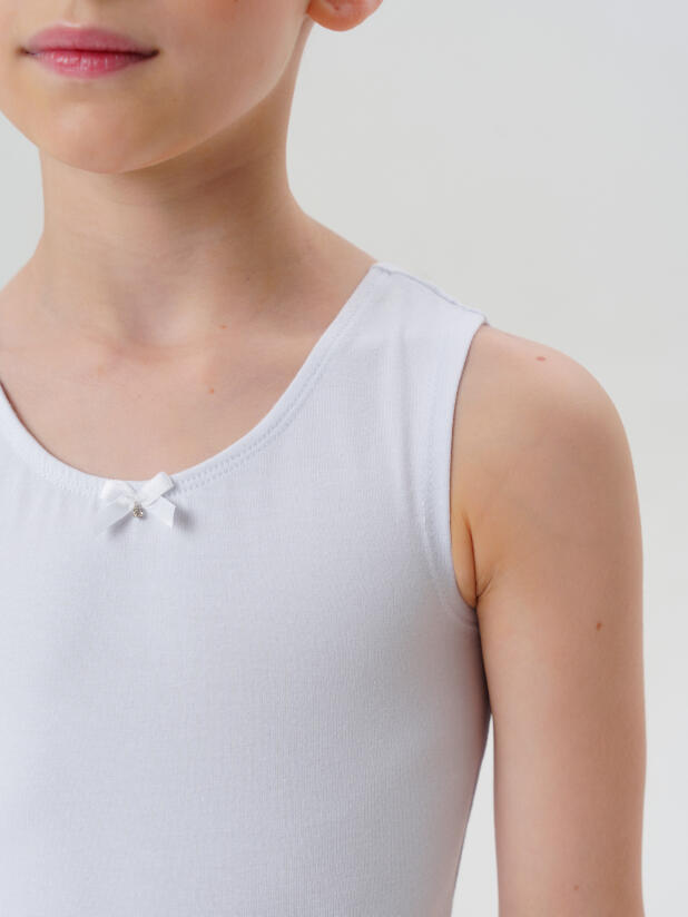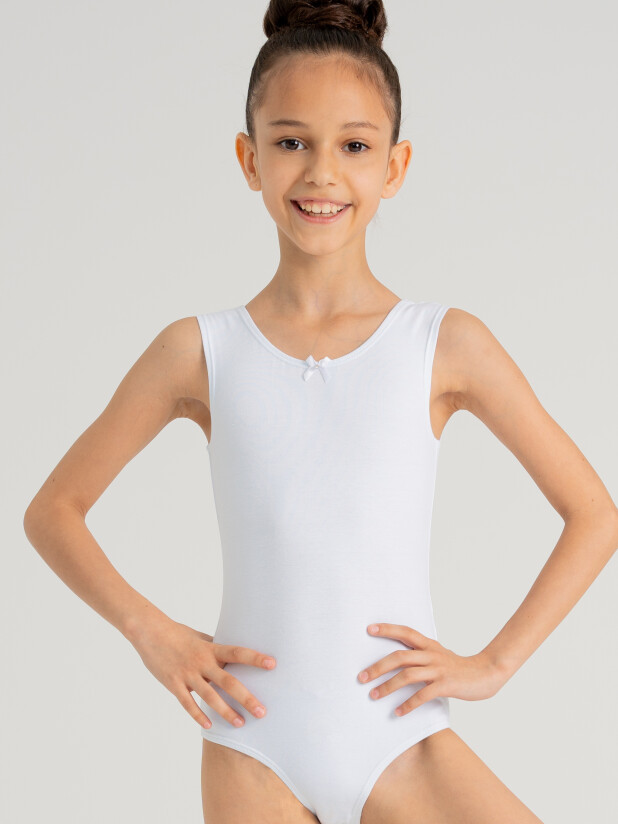 Гимнастический слитный хлопковый белый купальник боди для девочки от PlayToday — идеальный выбор для занятий гимнастикой, хореографией и танцами.