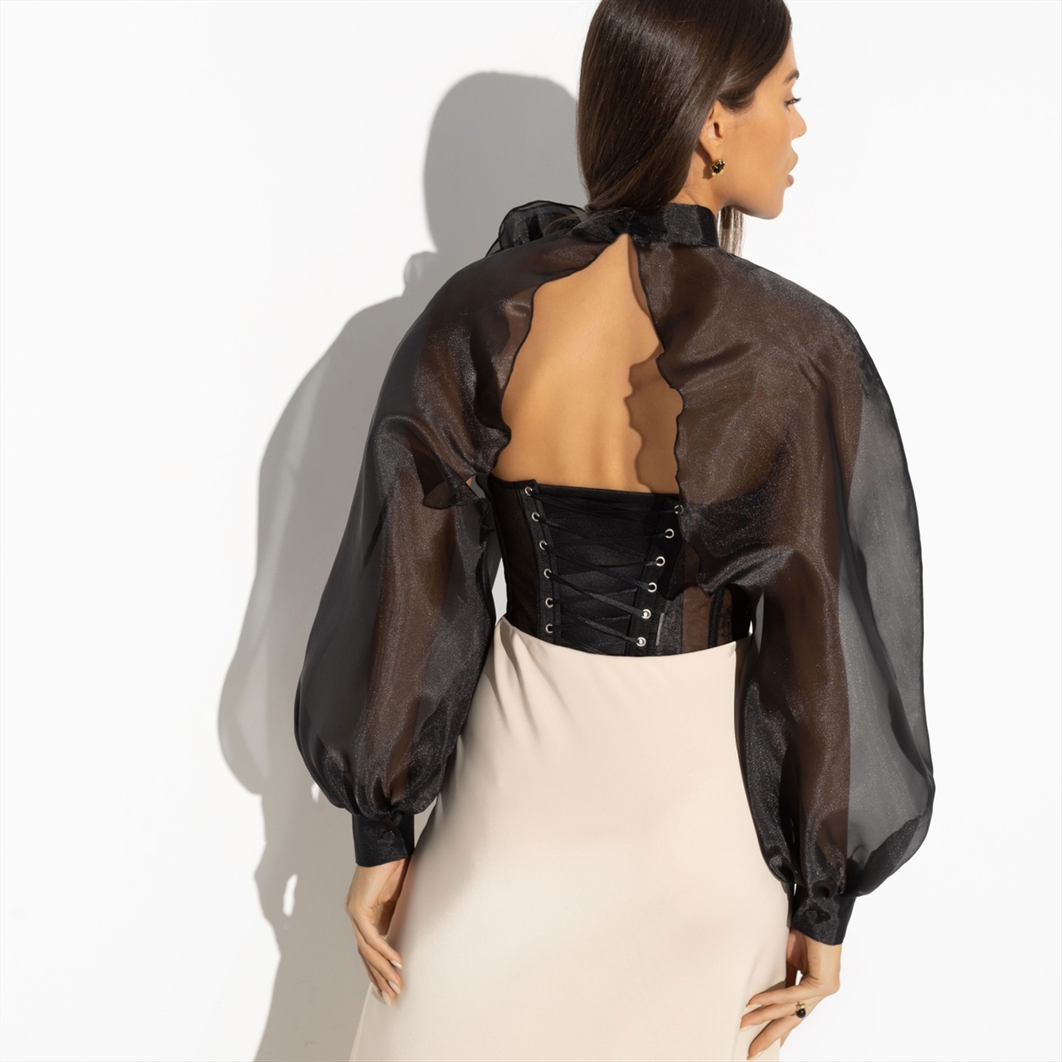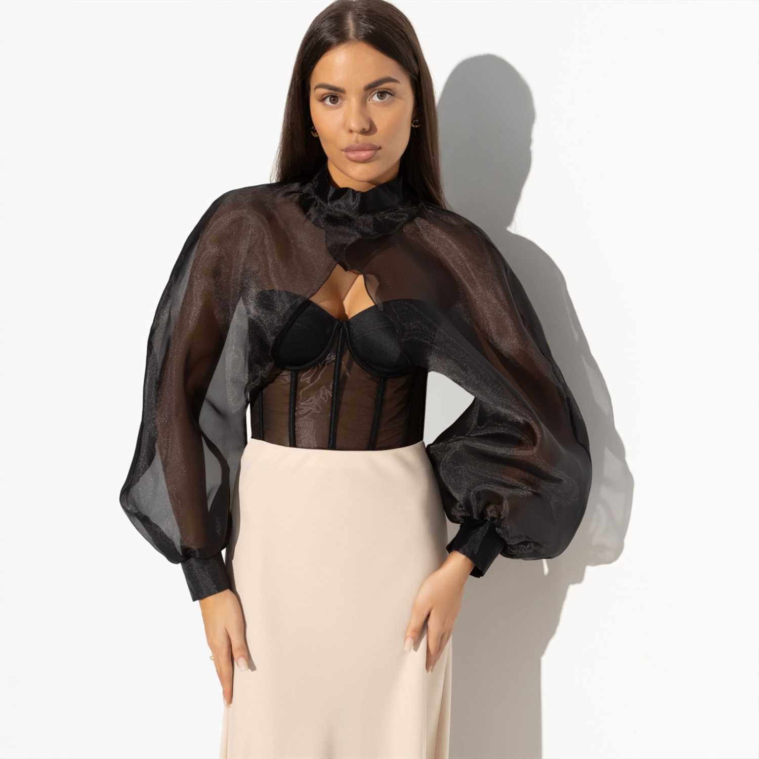 Болеро из органзы от бренда СHARUTTI — это не просто стильный элемент гардероба, это ваш личный символ, который поможет запечатлеть самые важные моменты в жизни. Если вы ищете возможность купить болеро оптом, обратите внимание на этот элегантный и универсальный вариант. Его объемные рукава и съемная брошь позволяют подчеркнуть изысканный вкус и индивидуальность. Болеро застегивается сзади на одну пуговицу, что придает образу утонченность и завершенность. Уникальность и роскошь органзы делают его идеальным выбором для торжественных мероприятий и деловых встреч.