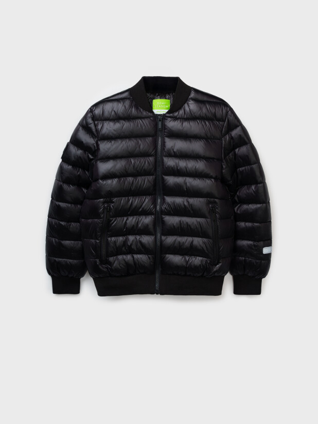 Классический силуэт этого стильного осеннего бомбера для подростков подчёркивает современный образ, при этом оставаясь универсальным — подходит к школьной форме и повседневной одежде. Эластичные вставки по низу изделия и на рукавах плотно прилегают к телу и удерживают тепло.