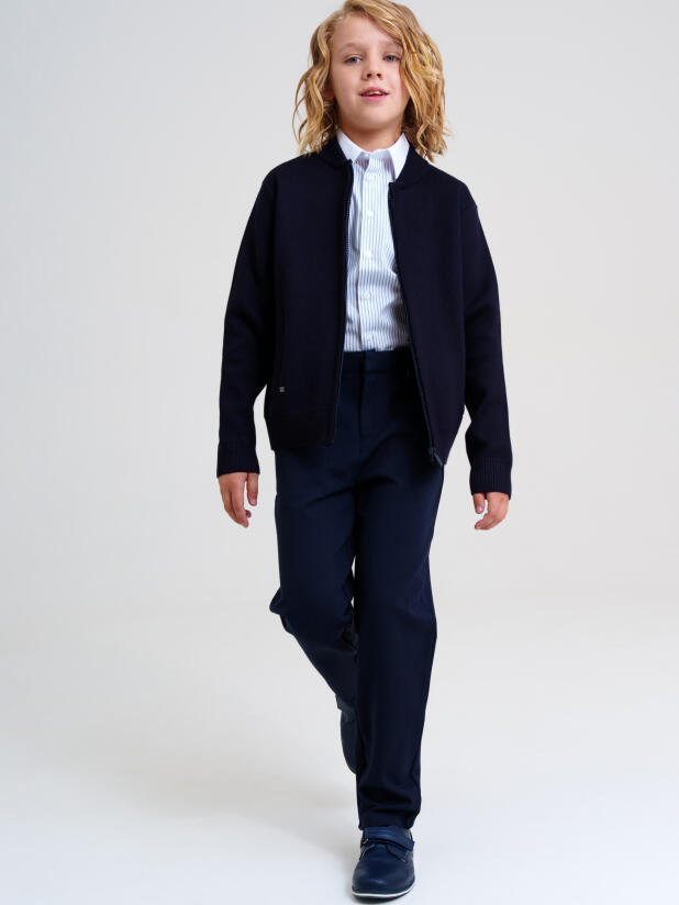 О товаре Классический темно-синий школьный вязаный бомбер для мальчика подростка от PlayToday — современный и стильный выбор для школы и повседневных образов. Прямой силуэт, застёжка на молнии и лаконичный дизайн делают эту кофту базовым элементом гардероба для активных и уверенных в себе школьников. Преимущества модели: + вязаный трикотаж с высоким содержанием вискозы + прямой крой + застёжка на молнии + функциональные боковые карманы + универсальный темно-синий цвет + лёгкий уход Этот синий подростковый бомбер для школы мягко садится по фигуре, не стесняет движений и дарит комфорт в течение всего учебного дня. Трикотаж приятен к телу, хорошо дышит и сохраняет аккуратный вид даже после многочисленных стирок. Функциональные боковые карманы позволяют удобно хранить мелочи или согреть руки в прохладную погоду. Лаконичный синий цвет делает этот универсальный школьный бомбер для подростков универсальным для любого школьного гардероба, а прямой крой позволяет легко сочетать его с рубашкой, футболкой или поло. Такая синяя кофта для мальчиков отлично подходит как для уроков, так и для прогулок или школьных мероприятий. Совет по стилю: сочетайте темно-синий детский трикотажный бомбер с классическими брюками и белой рубашкой от PlayToday для элегантного образа или добавьте джинсы и кроссовки для более расслабленного комплекта. Нарядный вязаный бомбер легко стирается, быстро сохнет и не требует сложного ухода. Модель представлена в размерах на рост 128–176 см — оптимальный выбор для мальчиков и подростков от 8 до 16 лет. Модный синий трикотажный бомбер в школу для мальчика от PlayToday — это свобода движений, стиль и комфорт на каждый день! СОСТАВ 80% вискоза, 20% полиэстер Уход Ручная стиркаю Максимальная температура стирки 30°С. Не отбеливать. Утюжить запрещено. Чистка запрещена. Не применять сушку в барабане. Горизонтальная сушка на плоскости в расправленном состоянии. Стирать с вещами такой же окраски. Бренд PlayToday АРТИКУЛ 22417092 Цвет Темно-синий Возрастная категория Школьники, Подростки Пол Мужской Сезон Демисезон Год коллекции 2025 Страна бренда Германия Страна производства Китай Возраст 8 лет, 9 лет, 10 лет, 11 лет, 12 лет, 13 лет, 14 лет, 15 лет, 16 лет Маркировка Товары легкой промышленности и одежда Миниколлекция School