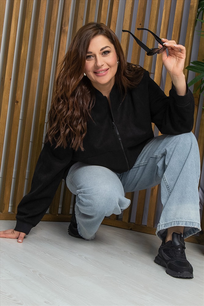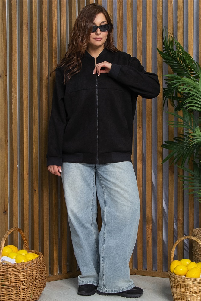 Свободный, удобный бомбер! Незаменимая вещь в гардеробе в прохладную погоду весной, летом и осенью. Рукав длинный, спущена линия плеча, по низу манжета из мягкого трикотажа. Бомбер на молнии, есть удобные карманы, разрезной по переду. Воротник и низ также выполнены из трикотажной резины в тон бомбера.
