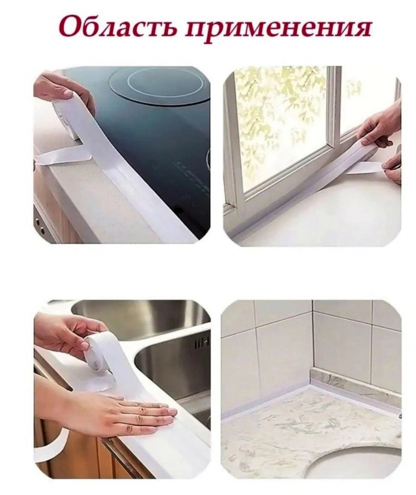 Легко и качественно защитите себя от ненужной влаги и грязи! Благодаря бордюрной самоклеящейся ленте монтаж ванны, унитаза, раковины, варочной поверхности сэкономит ваше время и деньги. Белая клейкая лента будет долго защитить ваш дом от плесени, грибка и грязи. Лента герметик как скотч заклеит все ненавистные щели. Она полностью водонепроницаемая и подойдет для стыков ванны, унитаза, раковины, варочной поверхности. Широкая, влагоотталкивающая клейкая лента станет прочным плинтусом для кухонного гарнитура. Лента бордюр легка в применении, достаточно соблюдать ИНСТРУКЦИЮ: 1) тщательно обезжирьте поверхность 2) приклейте ленту тщательно прижимая 3) убедившись в плотном прилегании ленты, нагрейте её феном 4) дождитесь полного высыхания 24 часа, за это время не допускайте попадания влаги на ленту. ВАЖНО! Для помещений с повышенной влажностью, рекомендуется клеить ленту на жидкие грозди. Мы уверенны, что силиконовая монтажная лента станет отличным помощником при борьбе с влагой и грязью!