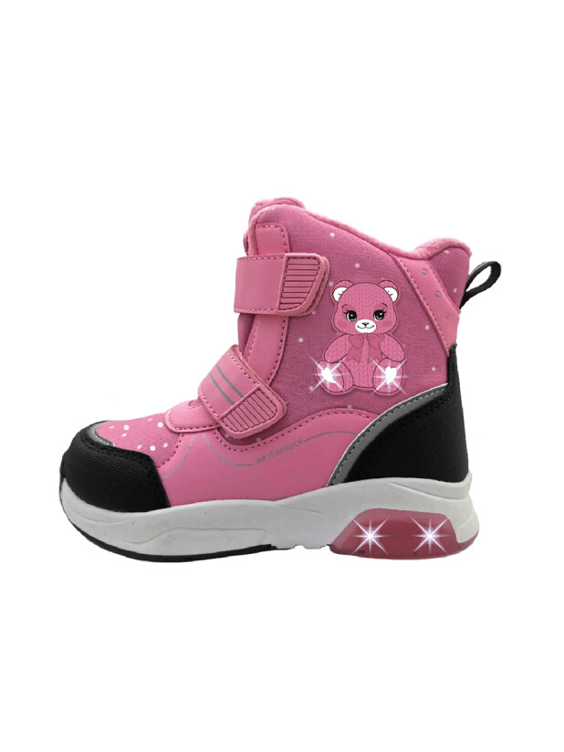 Сочетаются с зимними парками, комбинезонами и пуховиками. Яркий розовый цвет и светящиеся элементы делают образ неповторимым.