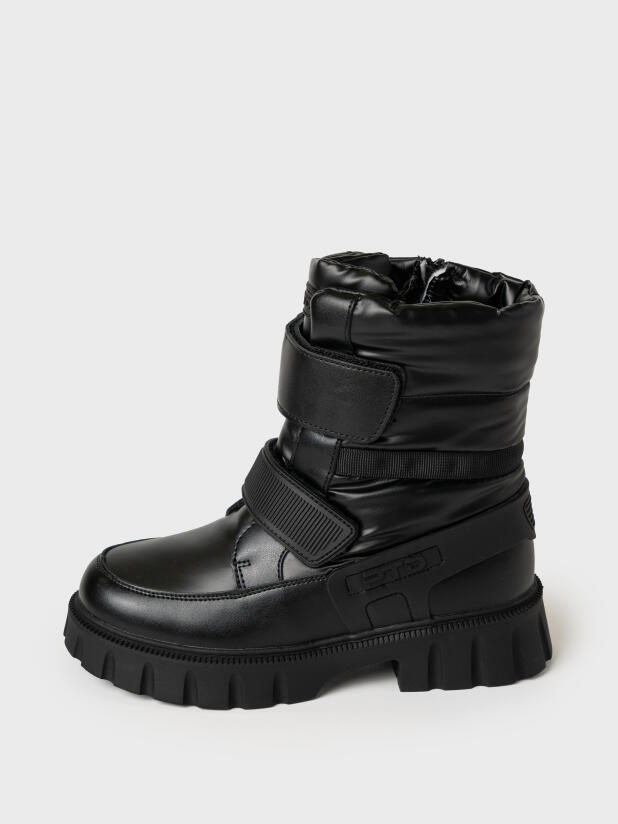 + тёплая трёхслойная конструкция верха — водоотталкивающий материал + искусственная кожа = надёжная защита от холода, снега и влаги