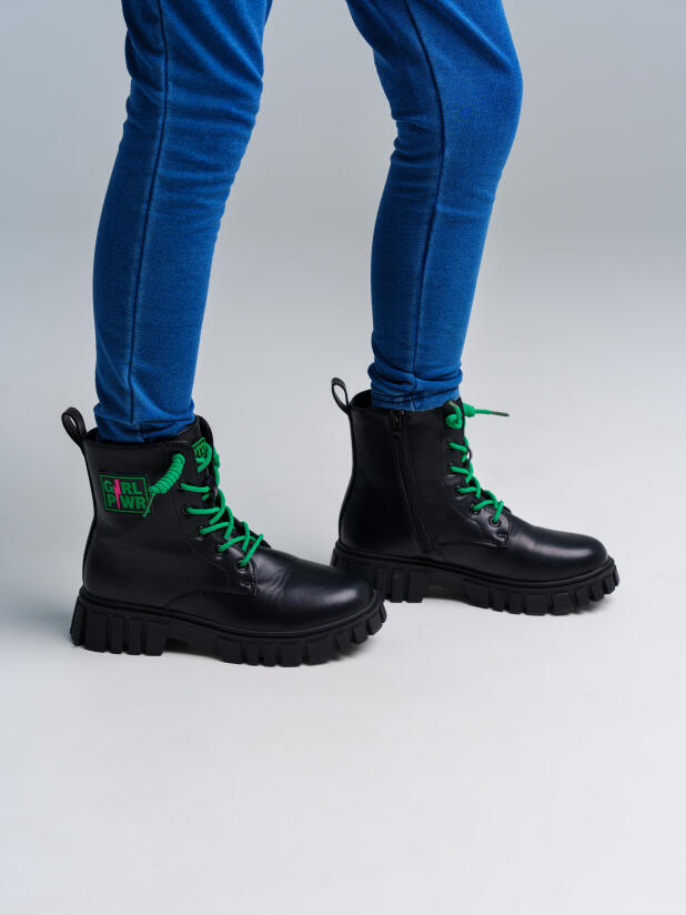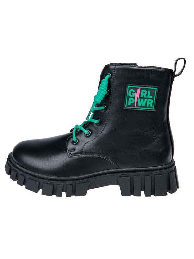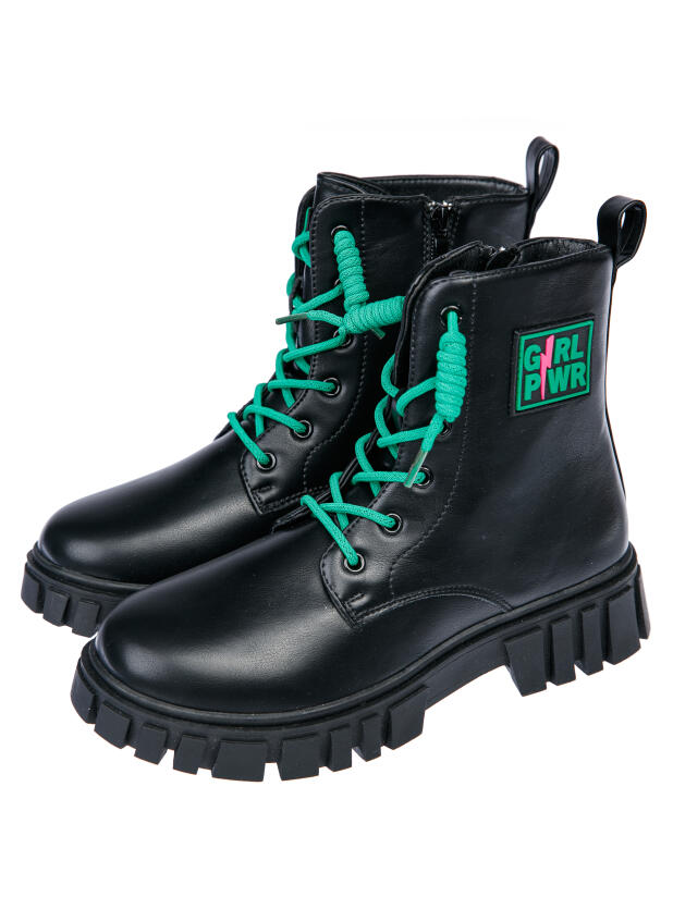 О товаре Ботинки из искусственной кожи. Подкладка и стелька выполнены из мягкого флиса. Формоустойчивый задник поддерживает стопу в правильном положении. Удобная форма колодки. Модель имеет застежку молнию, а шнурки регулируют объем обуви. Противоскользящая подошва устойчива к истиранию. Рекомендованный температурный режим от +10°С до -5°С. СОСТАВ 100% искусственная кожа Уход Рекомендуется чистка чистящими средствами специально предназначенными для синтетической кожи. Бренд PlayToday АРТИКУЛ 12421489 Цвет Черный, Зеленый Возрастная категория Школьники, Подростки Пол Женский Сезон Демисезон Год коллекции 2025 Страна бренда Германия Страна производства Китай Возраст 8 лет, 9 лет, 10 лет, 11 лет, 12 лет, 13 лет, 14 лет, 15 лет Маркировка Обувная продукция Миниколлекция POWER GIRLS