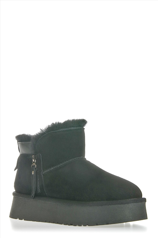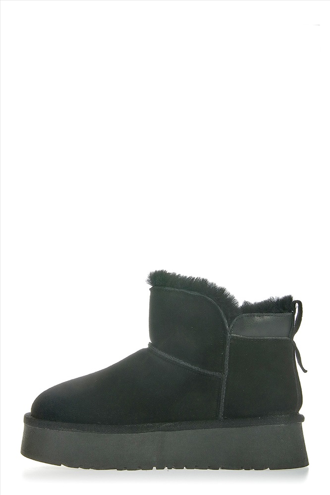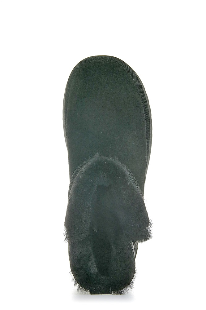 Цвет: Черный; Пол: Женский; Сезон: Зима; Тип: Ботинки; Материал верха: Натуральная кожа; Материал подкладки: Шерсть; Материал стельки: Шерсть Унты выполнены из натуральной замши, верх оформлен объемными швами. Задник укреплен вставкой и дополнен логотипом бренда. Внутренняя отделка из натуральной шерсти.