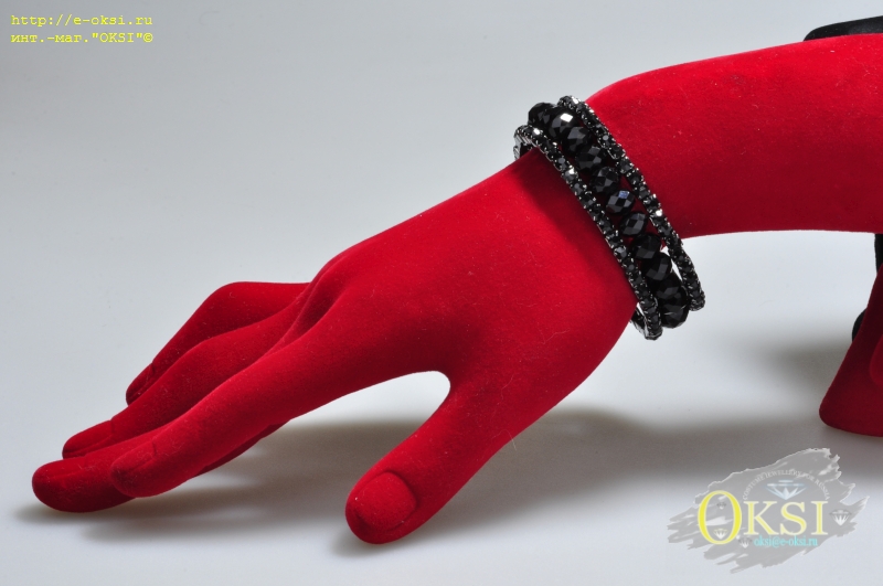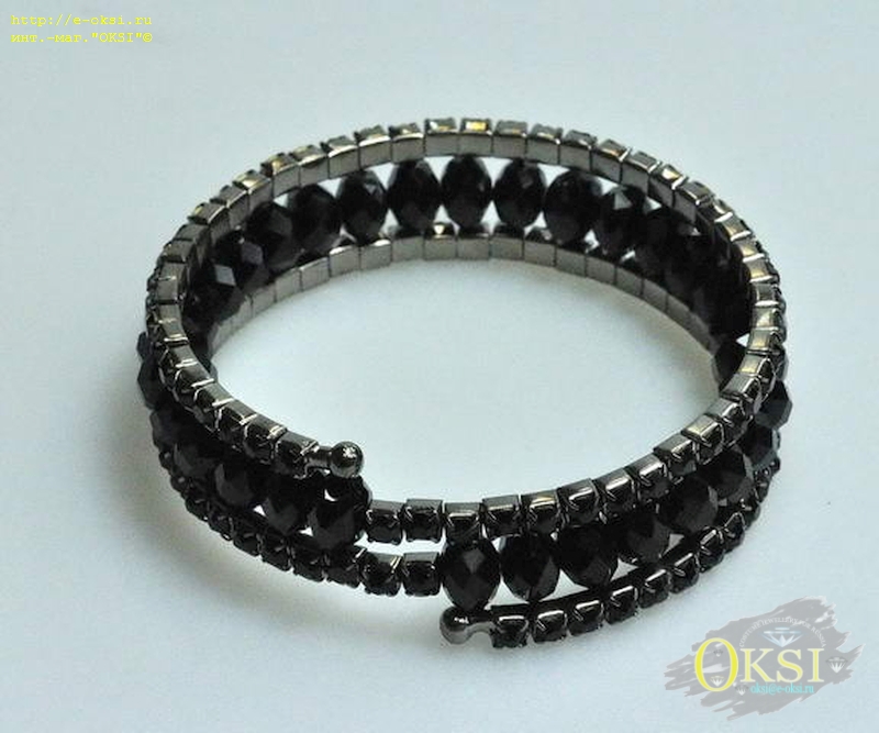 Эффектный, сверкающий браслет из хрусталя и кристаллов черного цвета. Качественное покрытие из черненого родия. Высота браслета 2 см. Выполнен в виде спирали.