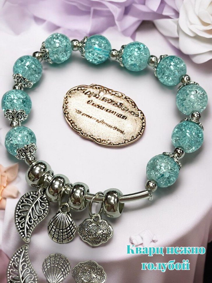 Изысканный браслет из натуральных камней - настоящее произведение искусства, созданное вручную с большой любовью и вниманием к деталям. Каждый экземпляр этого украшения уникален и неповторим, так как использование натурального камня делает его особенным и необычайно привлекательным. При создании этого браслета использовался камень натуральный кварц, качественная фурнитура под черненное серебро. Кварц известен своими способностями придавать своему обладателю спокойствие и уравновешенность. Фурнитура под серебро добавляет изделию изысканности и шика, делая его еще более привлекательным и стильным. Преимущество браслета на резинке заключается в его удобстве и практичности - он легко надевается и снимается, подходит практически под любой наряд, идеально дополняя ваш образ. Помимо этого, минеральные камни, из которых изготовлен данный браслет, имеют свойство усиливать энергетику человека и приносить ему удачу и успех. Этот браслет, сделанный с душой и вниманием, станет прекрасным украшением для вас или подарком для ваших близких.