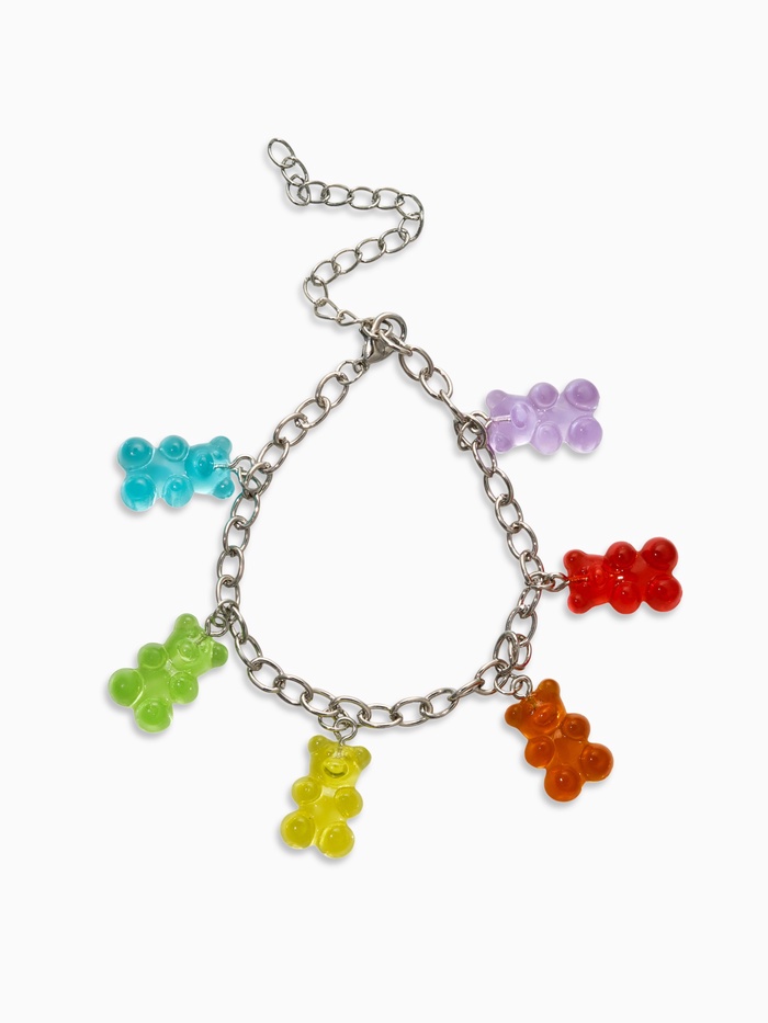 Металлический браслет длиной 17 см, украшенный яркими акриловыми элементами в виде милых мармеладных мишек, станет выразительным дополнением к образу девочки или женщины, ценящей игривость и оригинальность. Серебристый оттенок фурнитуры гармонично сочетается с насыщенной цветовой палитрой — оранжевым, жёлтым, зелёным, голубым, фиолетовым и красным, создавая настроение радости и легкости.