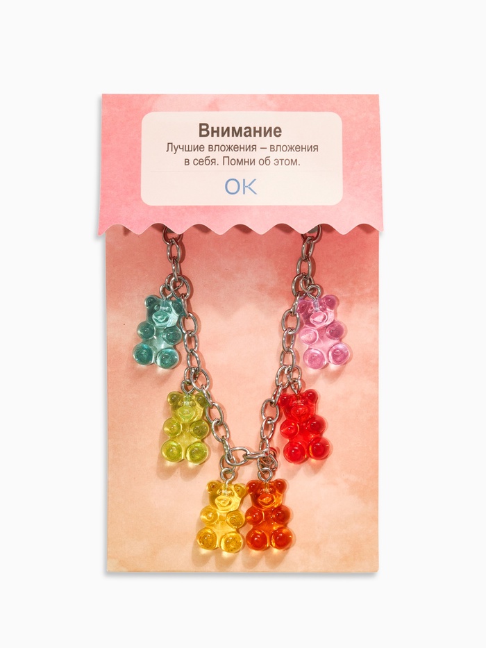 * Яркие акриловые вставки: создают эффект радужного мармелада, добавляя игривости и свежести образу.