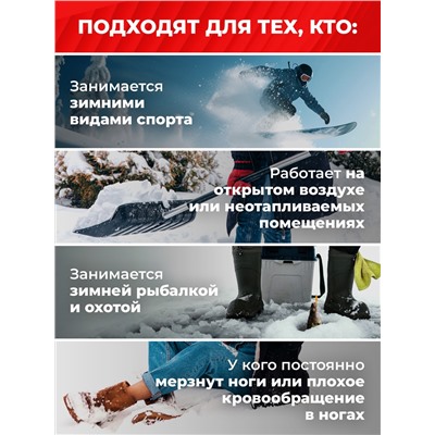 Это разогревающие стопу многоразовые и износостойкие стельки. Легко корректируются под индивидуальный размер, подходят для любой закрытой обуви. Нагреваются до 45 градусов, поэтому их можно носить на охоту, рыбалку, спорт даже в суровые зимние холода.