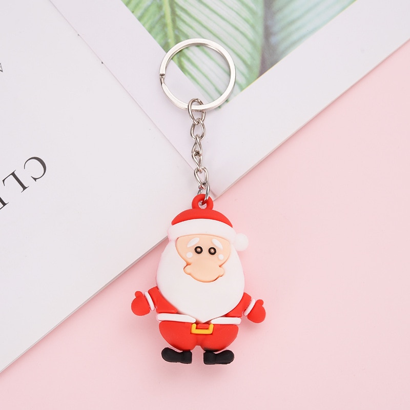 Брелок с металлическим кольцом и силиконовой подвеской в виде мультяшного новогоднего героя: Санта-Клаус, олень, снеговик.