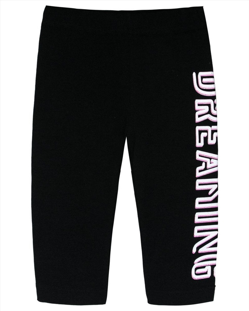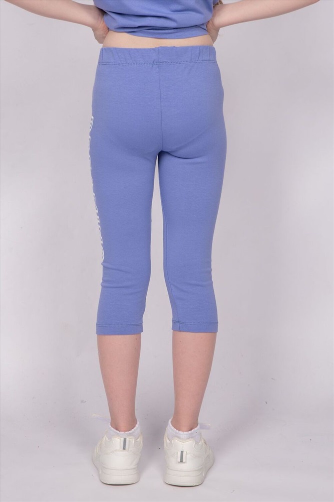Бриджи для девочки прилегающего силуэта из гладкокрашеного полотна. Пояс цельнокроенный, с эластичной тесьмой внутри, закрепленной в шов. Низ бридж обработан швом в подгибку. На передней половинке бридж принт Шелкография с глиттером. Надпись переводится как Мечтающая.