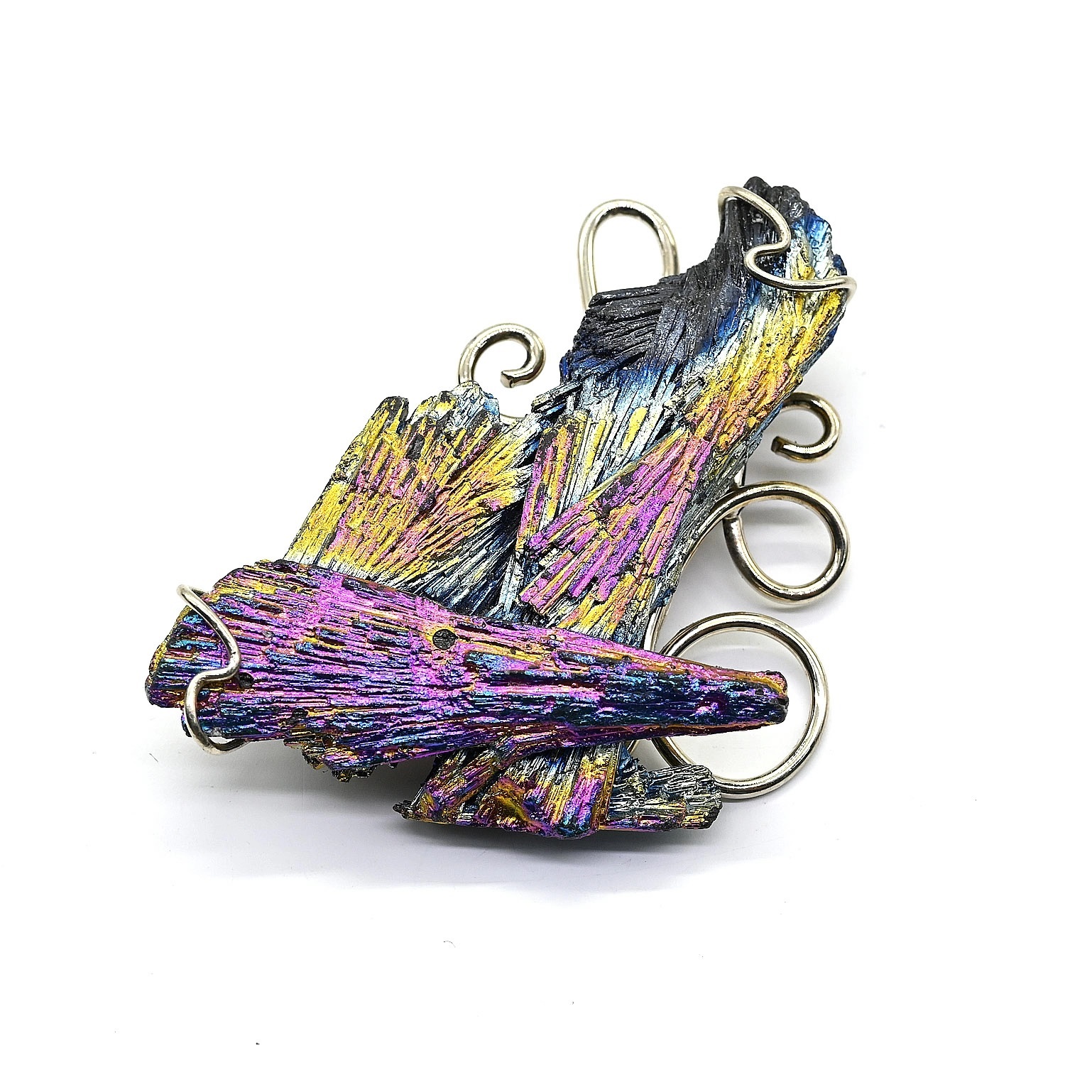 Натуральность: Натуральный камень Месторождение: Германия Основание: Нейзильбер •Авторское украшение ручной работы. Камни установлены в оправу из ювелирного сплава - нейзильбер. •Форма и рисунок камня никогда не повторяются, что делает данное изделие единственным в своем роде. •Кианит титановый - черный кианит покрытый титановым сплавом. •Покрытие дает прочность и добавляет радужный перелив цвета. •При заказе вы покупаете образец, который представлен на фото. Комментарии к товару