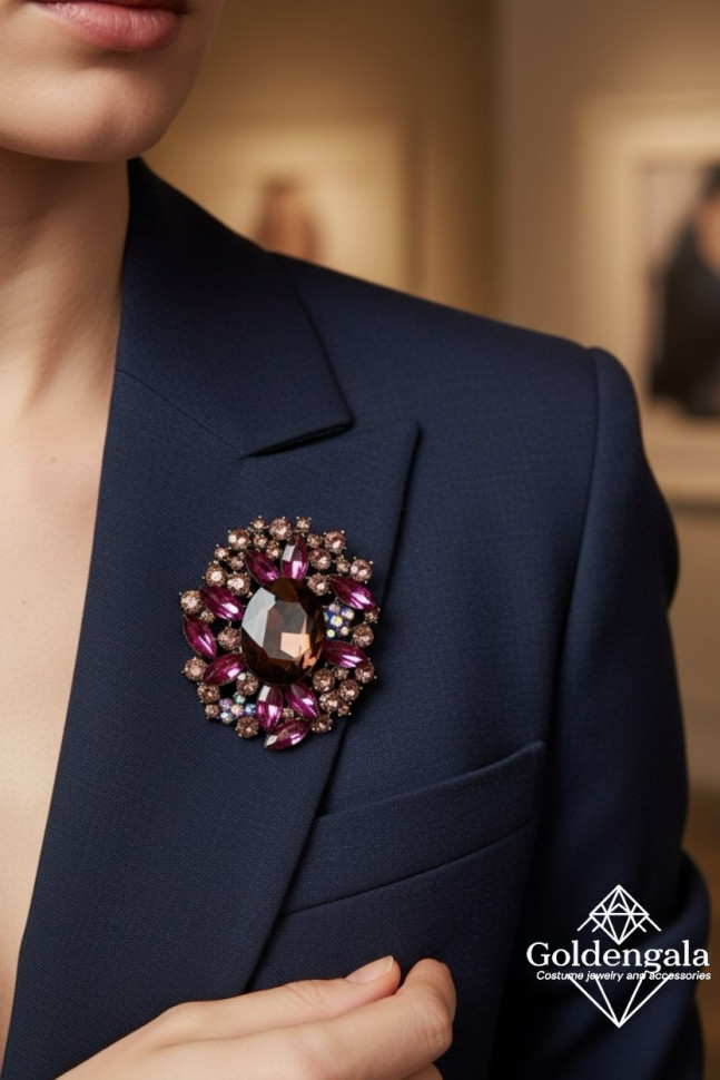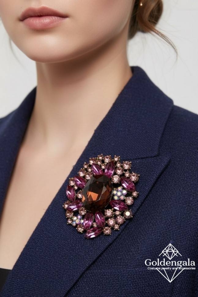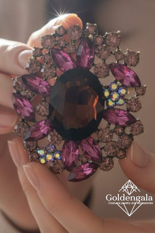Женская брошь от бренда Goldengala — это универсальное украшение, которое прикалывается к одежде и служит как для декоративных целей, так и, иногда, для выполнения утилитарной функции, например, застежки. Она способна преобразить образ, добавив акцент индивидуальности и стиля. Броши представляют собой широкое разнообразие изделий, от винтажных, классических, модных до современных дизайнерских работ. Они изготовлены из бижутерного сплава с гальваническим покрытием, украшены камнями, искусственным жемчугом, эмалью, стразами, кристаллами или бисером. Основное назначение броши в современном мире — это украшение и способ самовыражения. С помощью броши можно: * Привлечь внимание к определенной части гардероба или создать яркий акцент на лацкане пиджака, воротнике блузы или шарфе. * Модифицировать одежду, например, задрапировать ткань на футболке или платье, чтобы подчеркнуть талию. * Выразить индивидуальность или приверженность определенному стилю, так как существует огромное количество дизайнов, символизирующих разные вещи, например, животных или цветы. Как носить брошь Современная мода не диктует строгих правил ношения брошей, позволяя экспериментировать с их расположением на одежде и аксессуарах. Хотя традиционно ее носят на левой стороне, ближе к сердцу, сегодня ее можно увидеть где угодно. * На лацкане пиджака или пальто: Классический и элегантный вариант. Крупная брошь хорошо смотрится на объемной верхней одежде. * На блузке или платье: Можно приколоть у воротника, на плече или даже на поясе. * На аксессуарах: Броши отлично смотрятся на шарфах, шляпках, сумках и даже обуви. * На трикотаже: Брошью можно украсить свитер или кардиган, но следует учитывать тип ткани, чтобы не повредить ее. Благодаря своей универсальности и разнообразию дизайнов, женская брошь остается актуальным и востребованным аксессуаром в любое время года и в любом возрасте. Броши от бренда Goldengala бережно упакованы в нежные подарочные мешочки с завязками, а это значит, что будут приятным подарком для ваших друзей и близких. Позвольте себе сиять с *Goldengala* – где каждая деталь рассказывает историю вашей неповторимой красоты