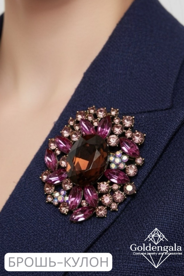 Брошь-кулон крупная с кристаллами БР4 модель БРО/15