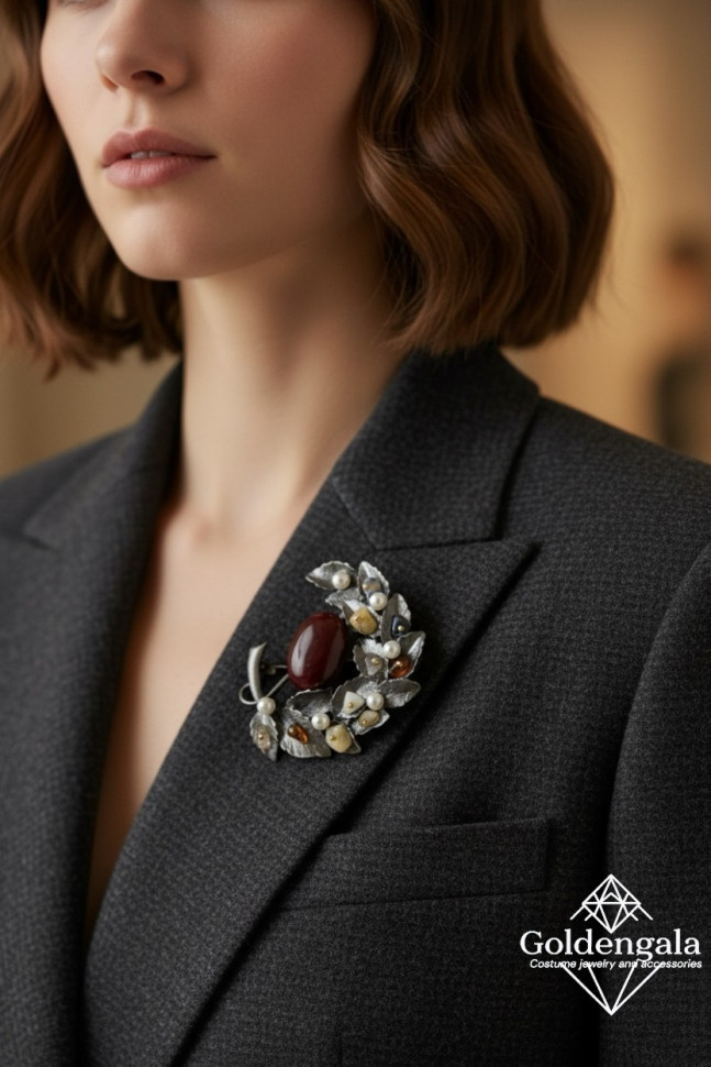 Женская брошь от бренда Goldengala — это универсальное украшение, которое прикалывается к одежде и служит как для декоративных целей, так и, иногда, для выполнения утилитарной функции, например, застежки. Она способна преобразить образ, добавив акцент индивидуальности и стиля. Броши представляют собой широкое разнообразие изделий, от винтажных, классических, модных до современных дизайнерских работ. Они изготовлены из бижутерного сплава с гальваническим покрытием, украшены камнями, искусственным жемчугом, эмалью, стразами, кристаллами или бисером. Основное назначение броши в современном мире — это украшение и способ самовыражения. С помощью броши можно: * Привлечь внимание к определенной части гардероба или создать яркий акцент на лацкане пиджака, воротнике блузы или шарфе. * Модифицировать одежду, например, задрапировать ткань на футболке или платье, чтобы подчеркнуть талию. * Выразить индивидуальность или приверженность определенному стилю, так как существует огромное количество дизайнов, символизирующих разные вещи, например, животных или цветы. Как носить брошь Современная мода не диктует строгих правил ношения брошей, позволяя экспериментировать с их расположением на одежде и аксессуарах. Хотя традиционно ее носят на левой стороне, ближе к сердцу, сегодня ее можно увидеть где угодно. * На лацкане пиджака или пальто: Классический и элегантный вариант. Крупная брошь хорошо смотрится на объемной верхней одежде. * На блузке или платье: Можно приколоть у воротника, на плече или даже на поясе. * На аксессуарах: Броши отлично смотрятся на шарфах, шляпках, сумках и даже обуви. * На трикотаже: Брошью можно украсить свитер или кардиган, но следует учитывать тип ткани, чтобы не повредить ее. Благодаря своей универсальности и разнообразию дизайнов, женская брошь остается актуальным и востребованным аксессуаром в любое время года и в любом возрасте. Броши от бренда Goldengala бережно упакованы в нежные подарочные мешочки с завязками, а это значит, что будут приятным подарком для ваших друзей и близких. Позвольте себе сиять с *Goldengala* – где каждая деталь рассказывает историю вашей неповторимой красоты