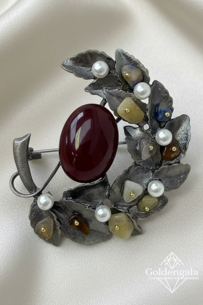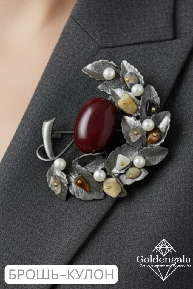 Брошь-кулон крупная с натуральными камнями БР4 модель БРО/19
