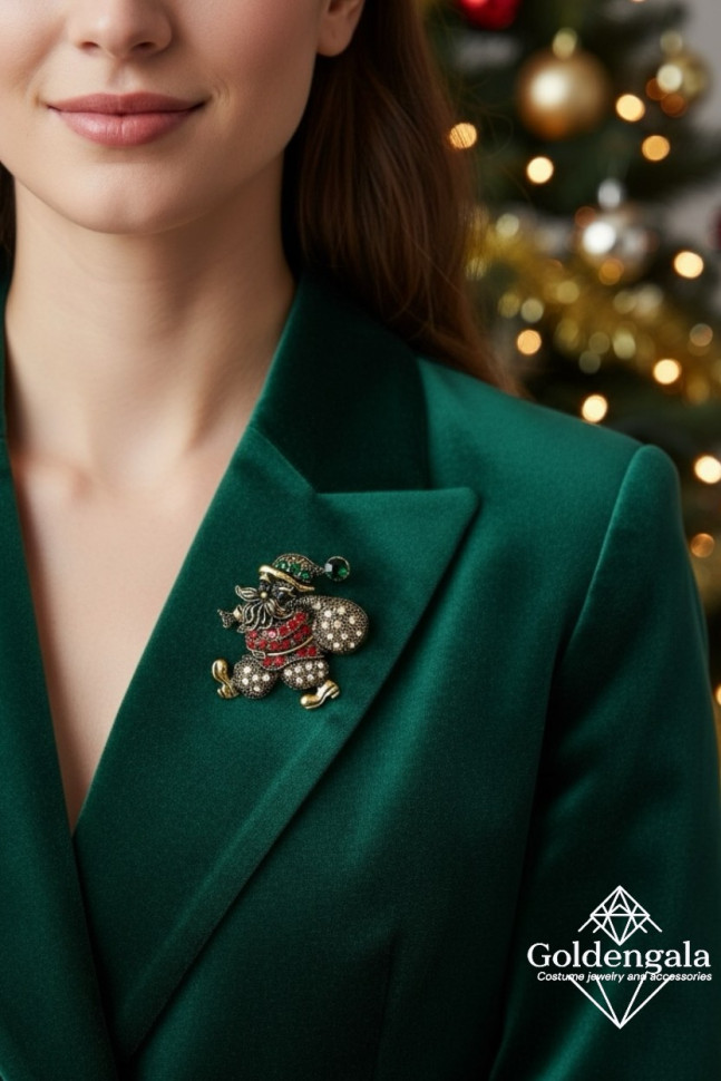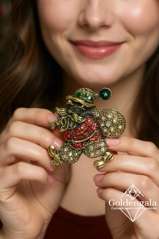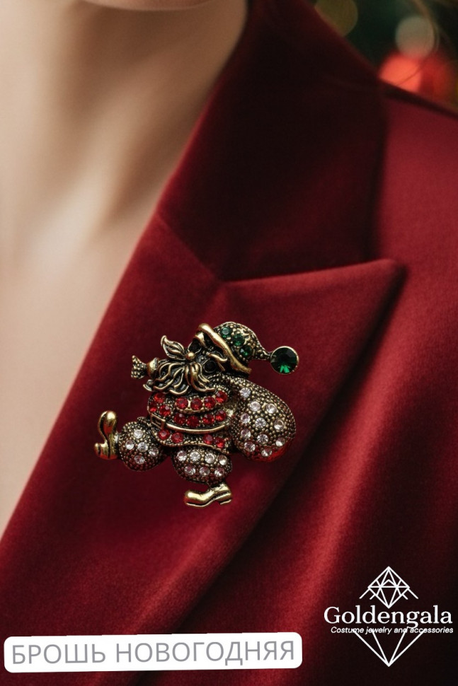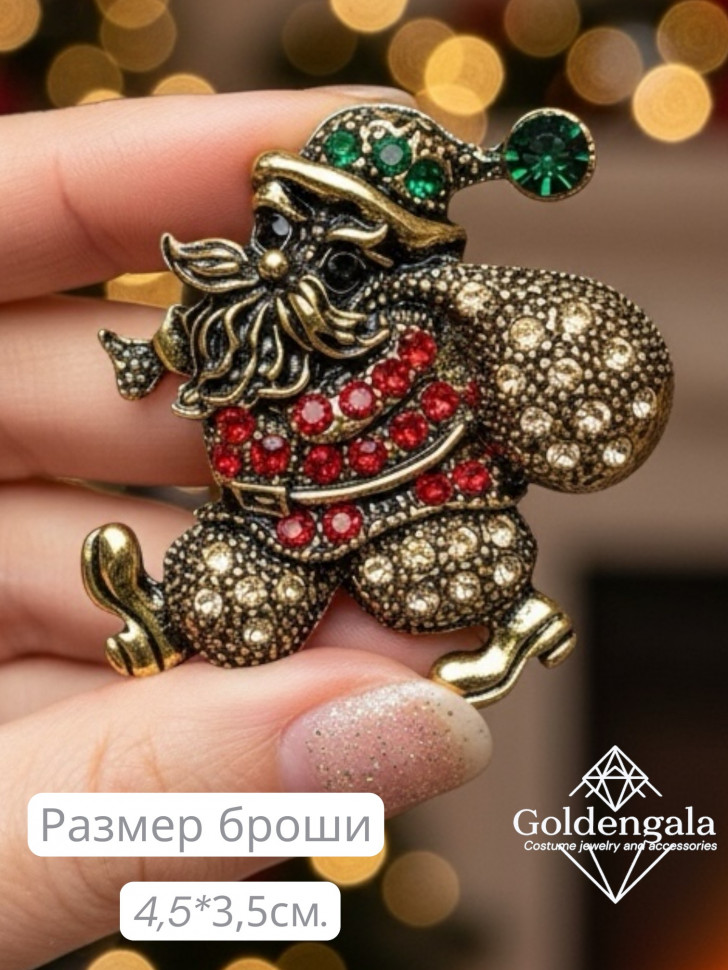 Брошь новогодняя "дед мороз" БР4 модель БРО/23 золото