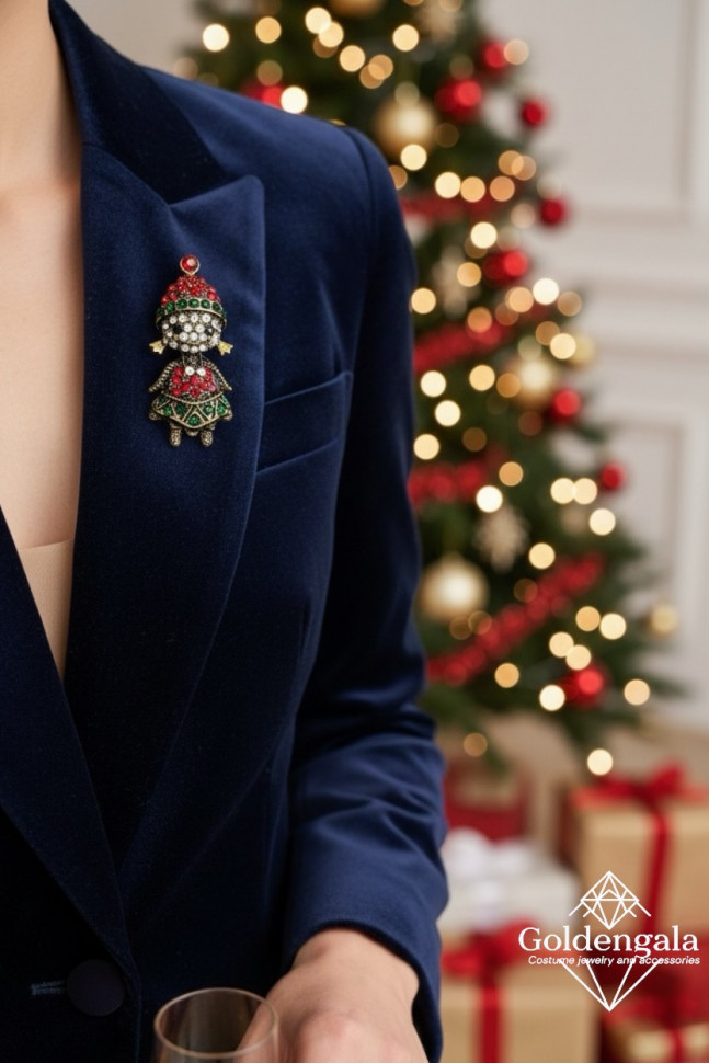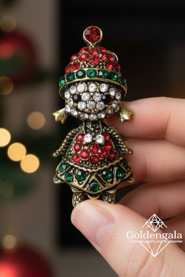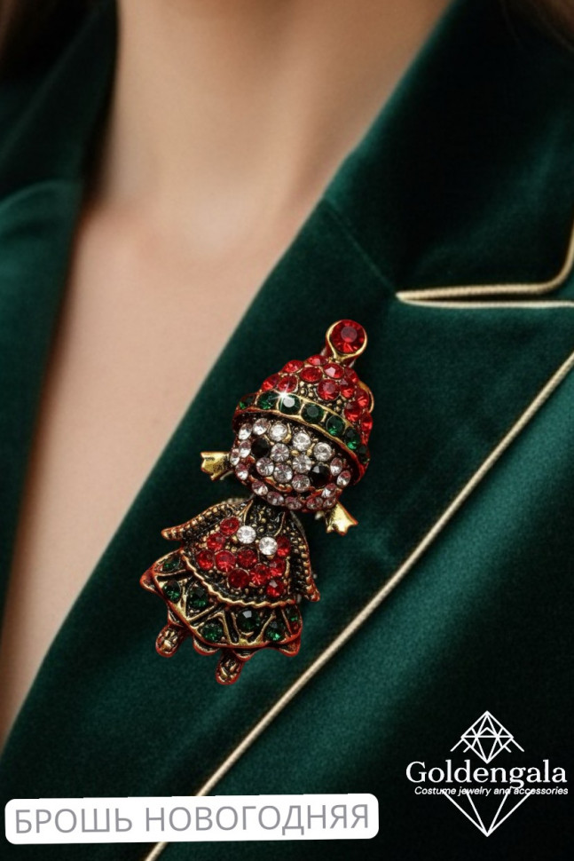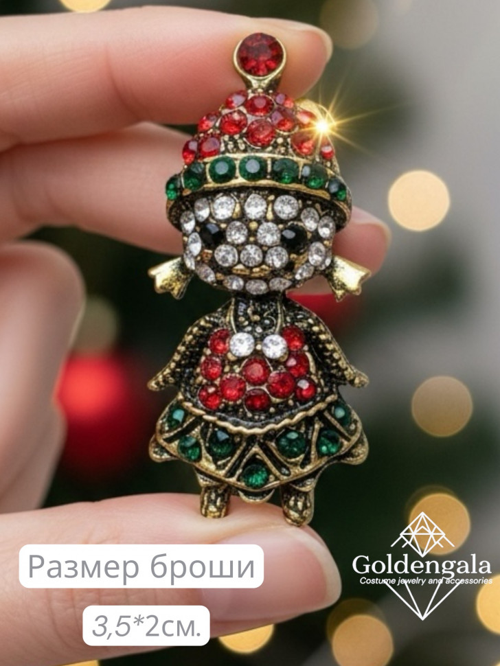Брошь новогодняя "снегурочка" БР4 модель БРО/24 золото
