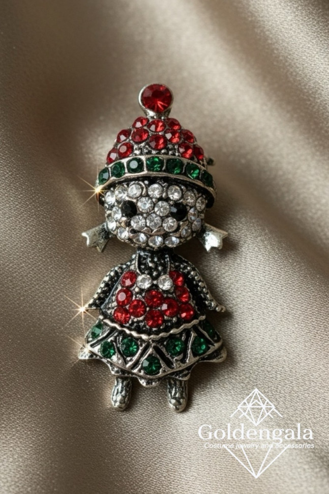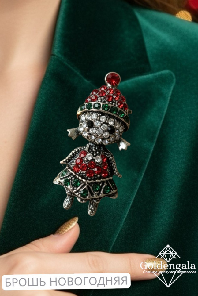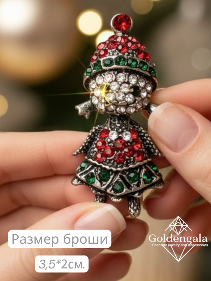 Брошь новогодняя "снегурочка" БР4 модель БРО/25 серебро