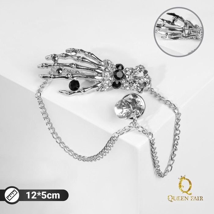 Откройте для себя уникальную брошь в виде скелета с цепочкой, которая станет неотъемлемой частью вашего стильного образа. С длиной 12 см и черно-белым дизайном на серебряной фурнитуре, она идеально подходит для создания смелых и необычных нарядов. Эта брошь не только привлекает внимание, но и добавляет загадочности и оригинальности вашему стилю.