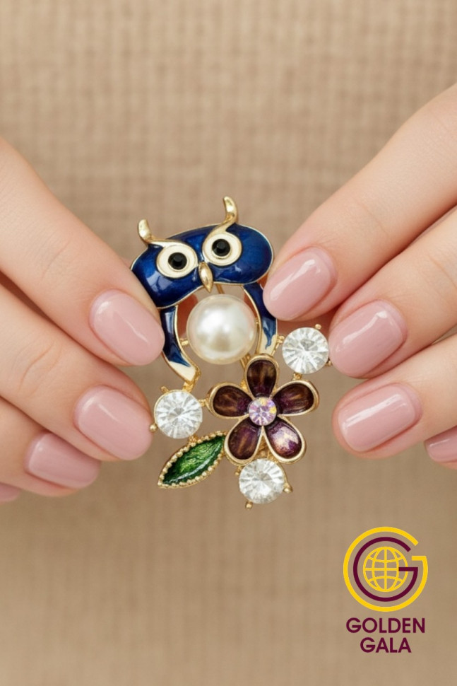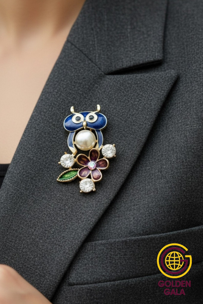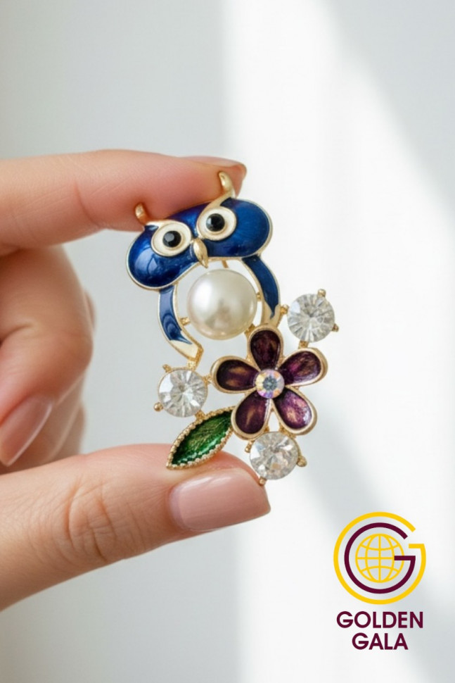 Брошь совушка с жемчугом БР4/1
