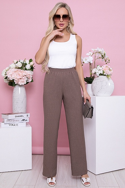 Брюки из легкой костюмной ткани прямого,свободного силуэта.Пояс на эластичной резине. 15% лен,80% п/э,5% лайкра Комментарии к товару
