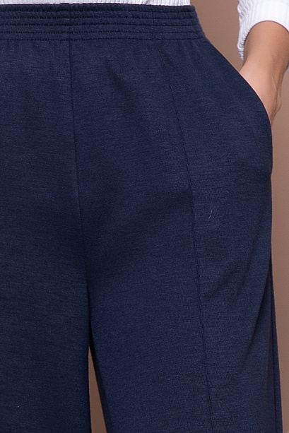 Брюки из трикотажно полотна расширенные к низу по поясу с эластичной резиной и функциональными карманами.Цвет: т.синий. 50% вискоза,45% п/э,5% лайкра Комментарии к товару