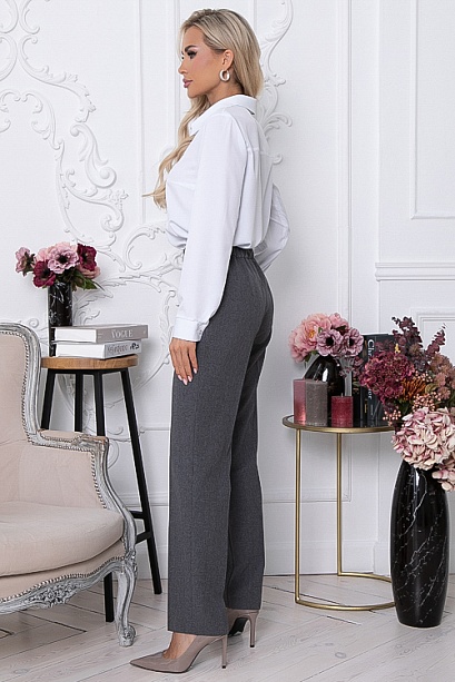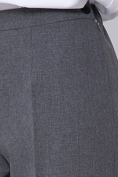 • Брюки из костюмной ткани с заутюженными стрелками,зауженные к низу.Застежка в боковом шве на потайную молнию.Притачной пояс с застежкой на пуговицу,по спинке собранный на эластичную резину.