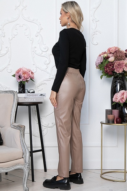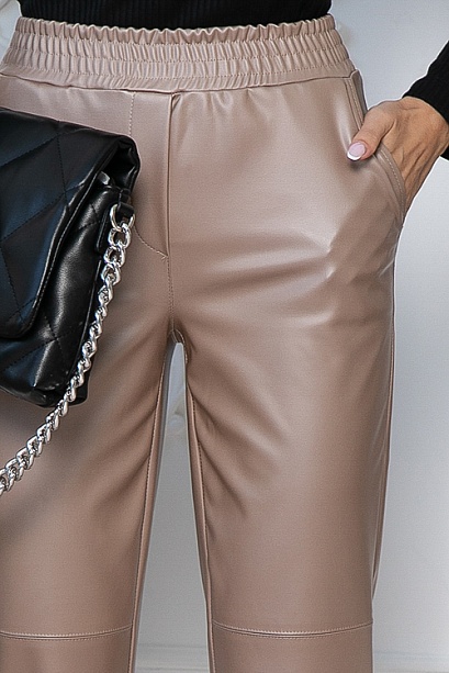 Комфортные брюки из экокожи,в боковых швах функциональные карманы,удобную посадку по талии обеспечивает эластичный пояс на резинке.