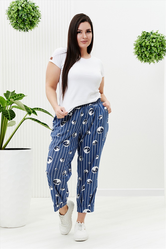 Состав: хлопок 100% Модель: Брюки 9147 Тип товара: брюки Материал: кулирка | кулирка Бренд: Натали Суслова Карман: боковые Назначение: для дачи | для дома Особенности: на резинке Отделка: с карманами | с манжетами Посадка: высокая посадка Рейтинг: Рейтинг 4 и выше Рисунок: горошек | полоска Сезонность: лето Силуэт: прямой Скидка: любая Стиль: домашний Застежка: без застежки Брюки женские, бананы, внизу передней и задней части по две встречные складки, манжеты. В брюках удобные внутренние карманы, пояс выполнен на многоигольной машине. Таблица размеров и веса
