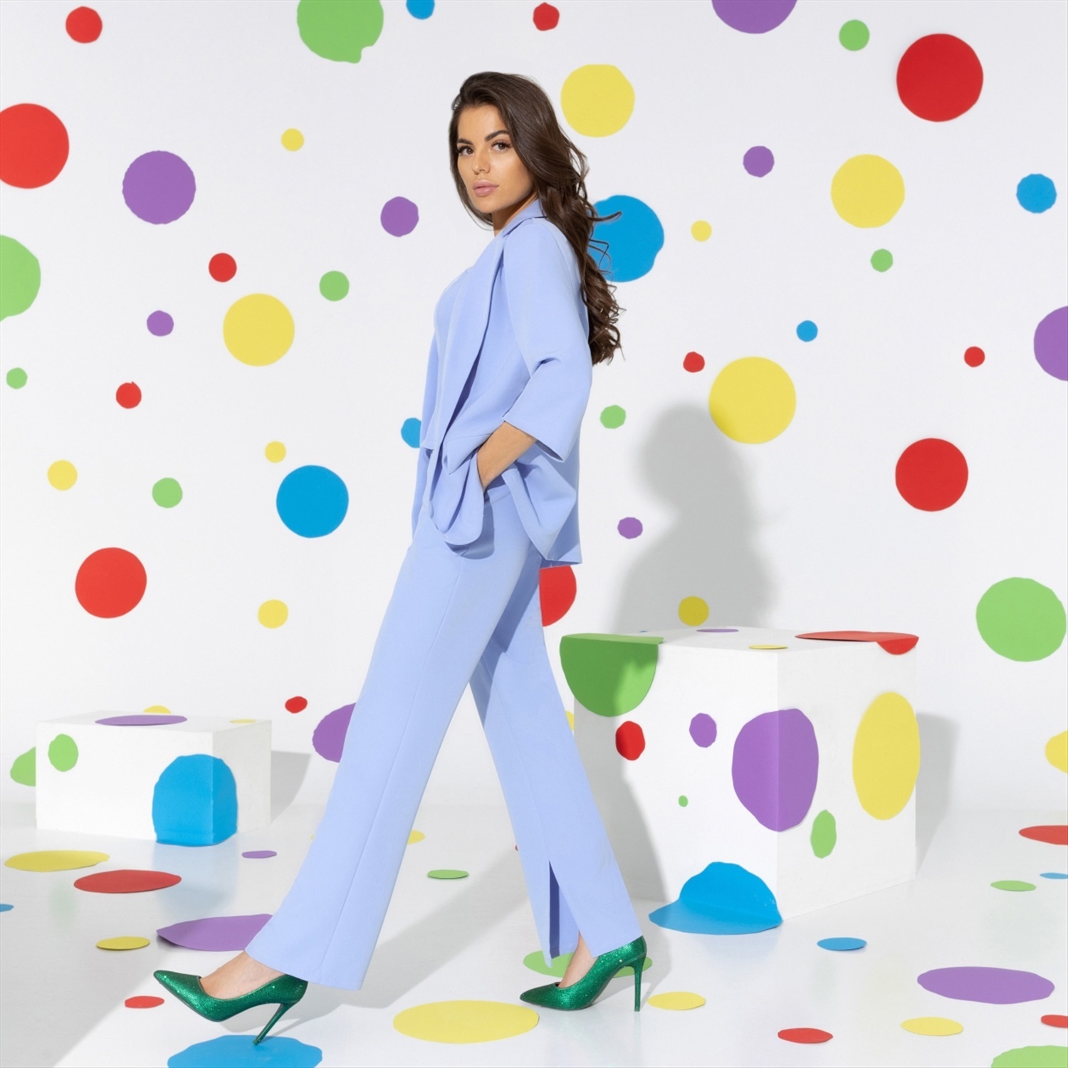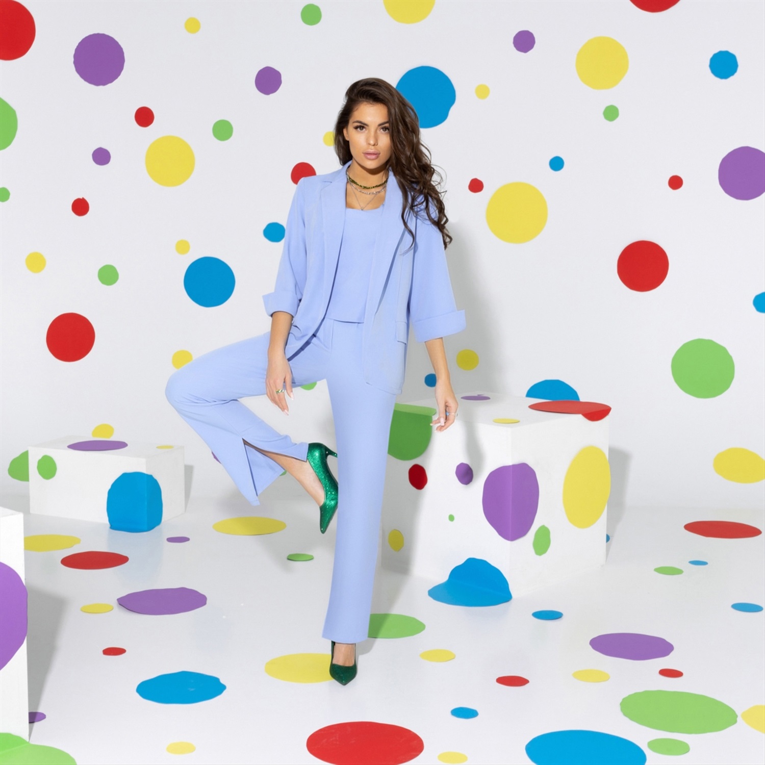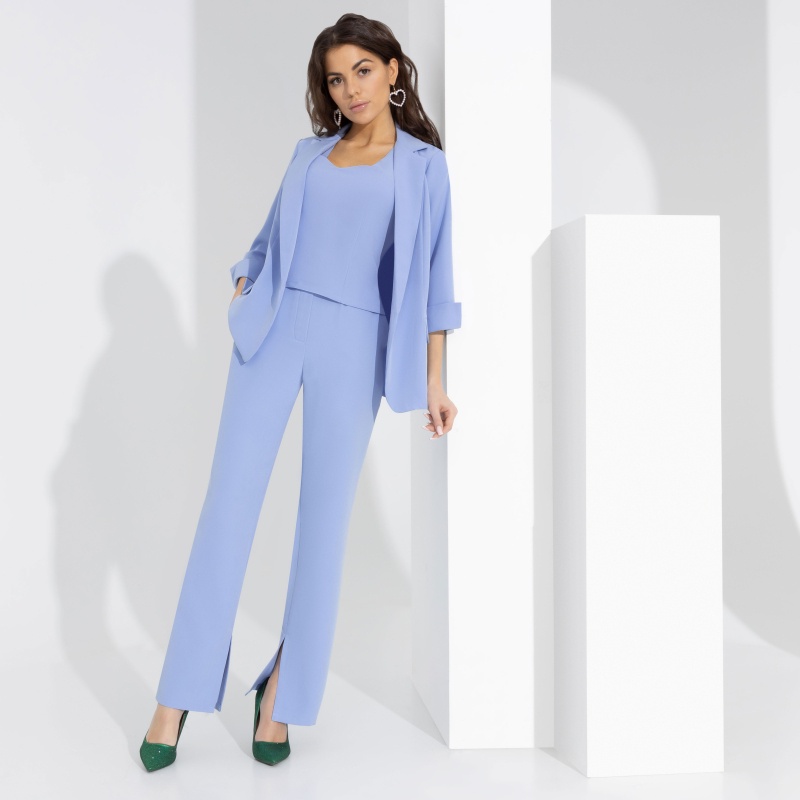 Голубой цвет в одежде – новый тренд этого года, фактически, голубой – это новый красный. Это вполне объяснимо: утонченный, изящный, элегантный. Возьмете только брюки или стильный монохромный образ полностью!