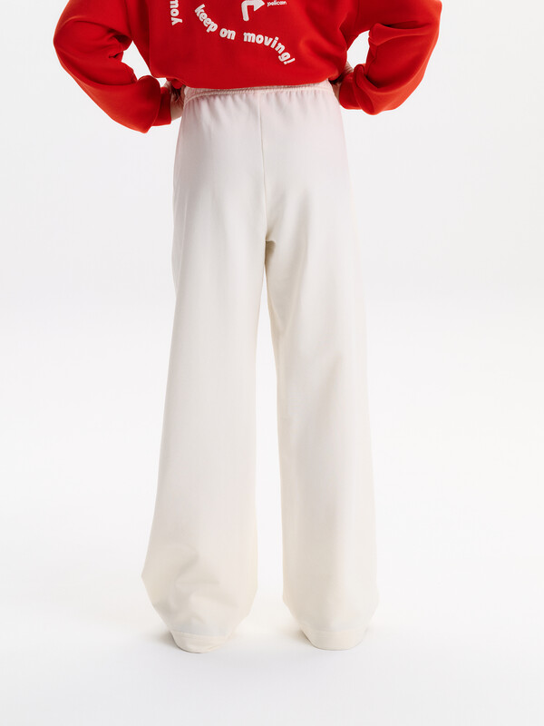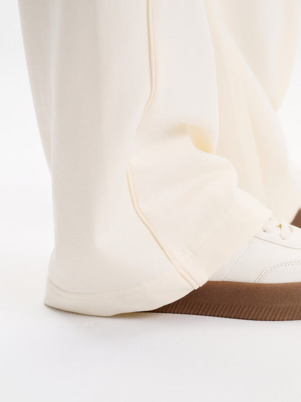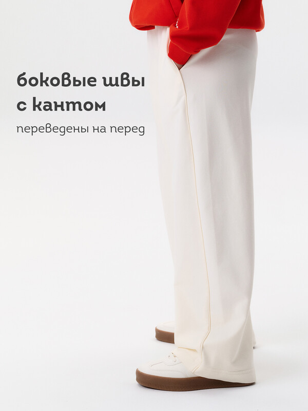 Состав: 95%хлопок 5%эластан Новые широкие прямые брюки плаццо из тонкого хлопкового футера. Плотность 245 гр/кв.м. Боковые швы с кантом переведены на перед. Карманы в боковых швах. В поясе внутренняя утяжка на шнурок. Комментарии к товару
