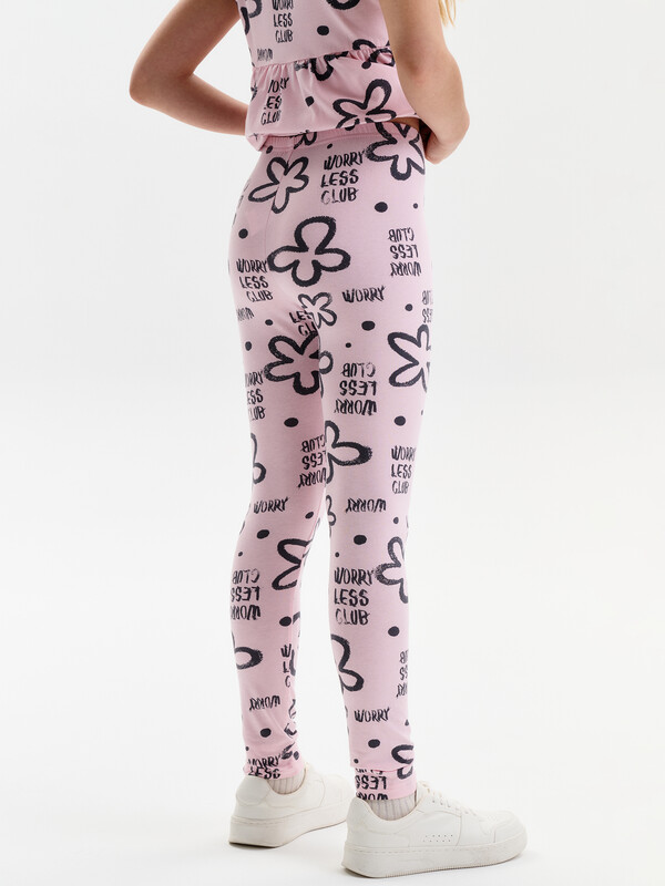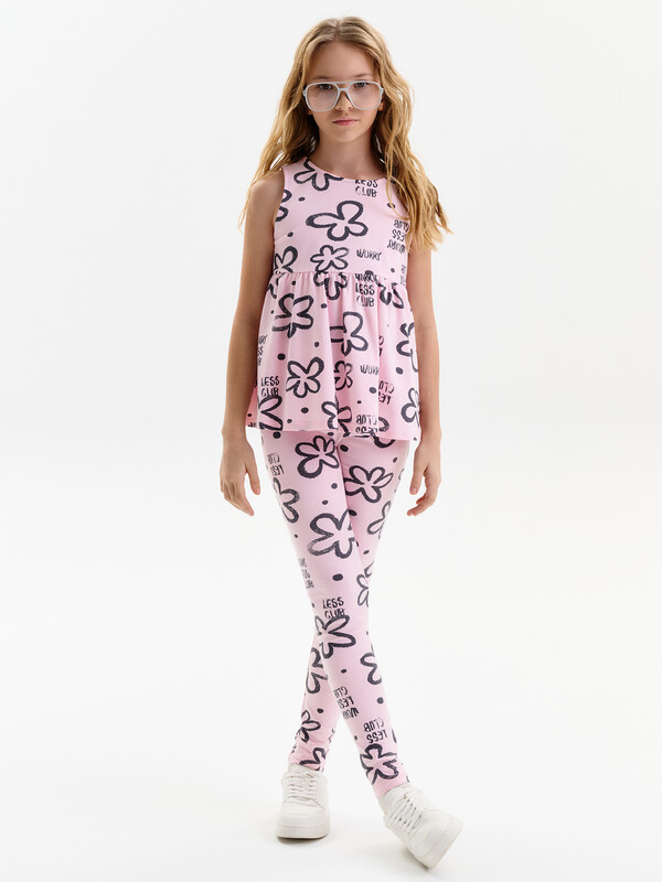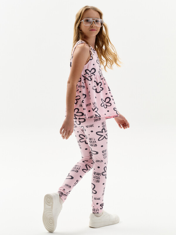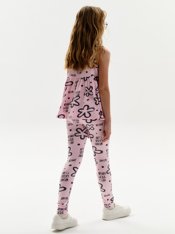 Трикотажные лосины для девочек. Плотные и эластичные.  Широкий мягкий пояс не будет сдавливать живот и врезаться в кожу. Средняя посадка.